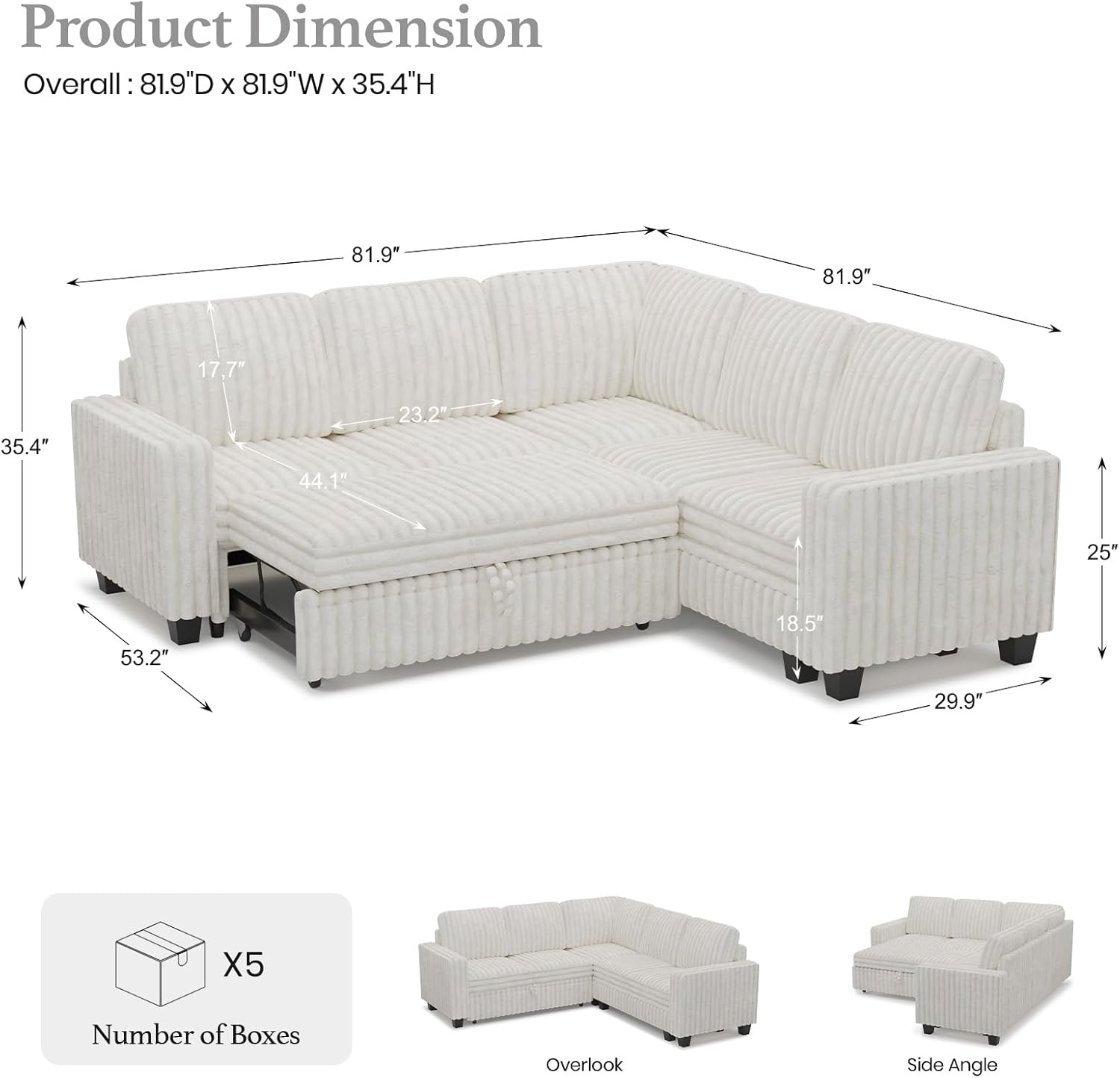 • Easy Assembly: Assembly of this modular sectional pull out sofa is effortless. The corduroy sectional sofa is conveniently packaged in 5 boxes, which may occasionally be delivered on separate days