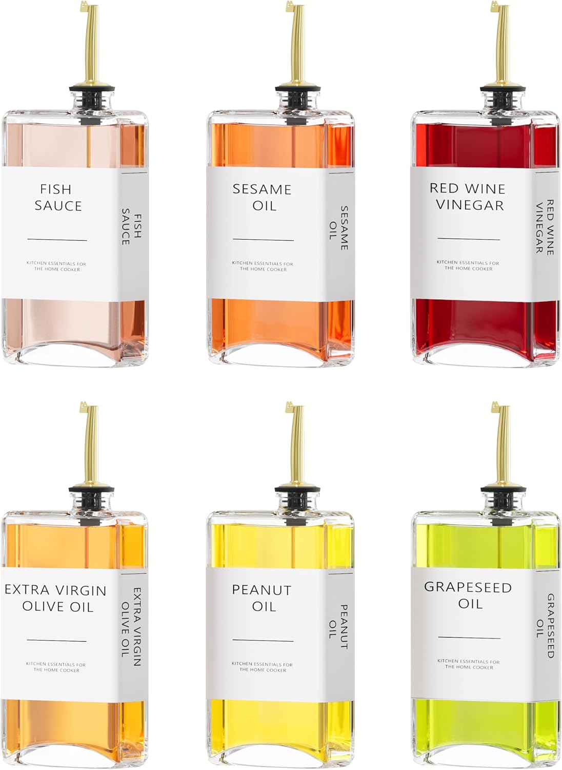 New England Stories Kitchen Cooking Oil Dispenser Set, Olive Oil and Vinegar Bottles, Soy Sauce Dispenser - 6 Pieces, Gold, Durable & Stylish Design
