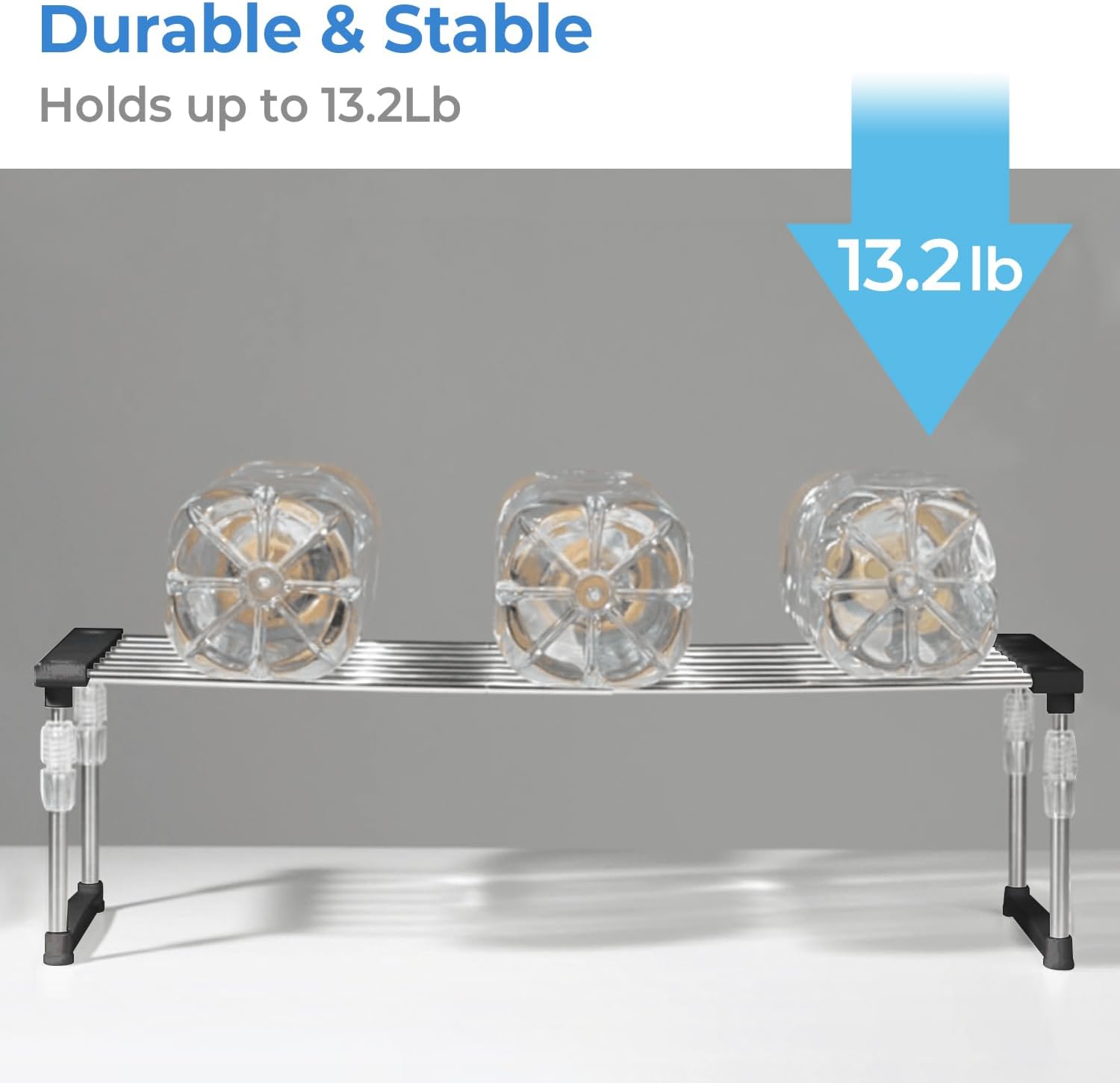 • **Customizable and Adjustable Design:** This versatile kitchen cabinet organizer allows you to tailor the width and height to fit your specific needs, providing a perfect solution for various cabinet spaces. Ideal for optimizing pantry organizers and storage, this shelf can easily accommodate different items.