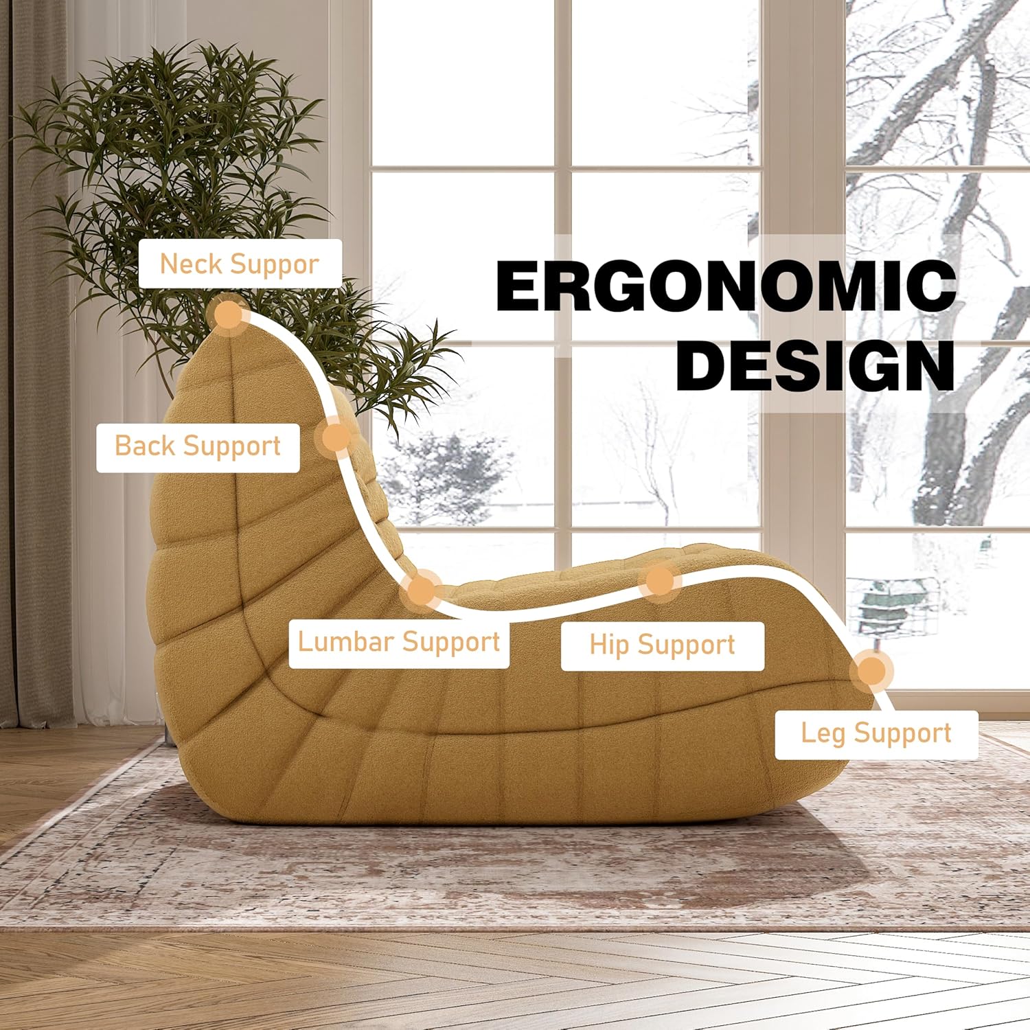 • 【Ergonomic Design】-Designed with your comfort in mind, the bean bag chair features a thoughtful ergonomic design that provides exceptional support for your neck, back, lumbar, hip and leg region. The high-elastic memory foam filling conforms to your body, offering targeted support and ensuring a cozy sitting experience.