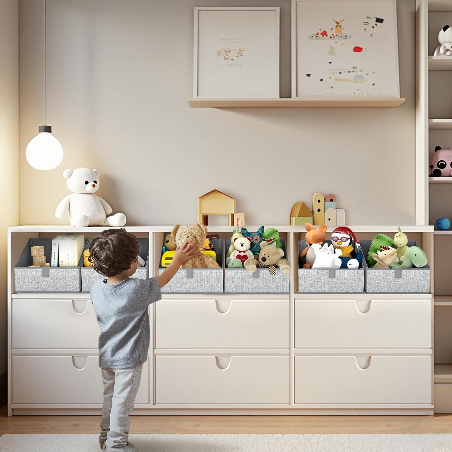 • 【Multipurpose】These closet shelf organizer for organizing towels, winter clothes, toys, magazines, DVDs, office & crafts supplies, etc. these fabric storage bins fits nicely onto shelves, beds, desks in the bathroom, bedroom, or living room