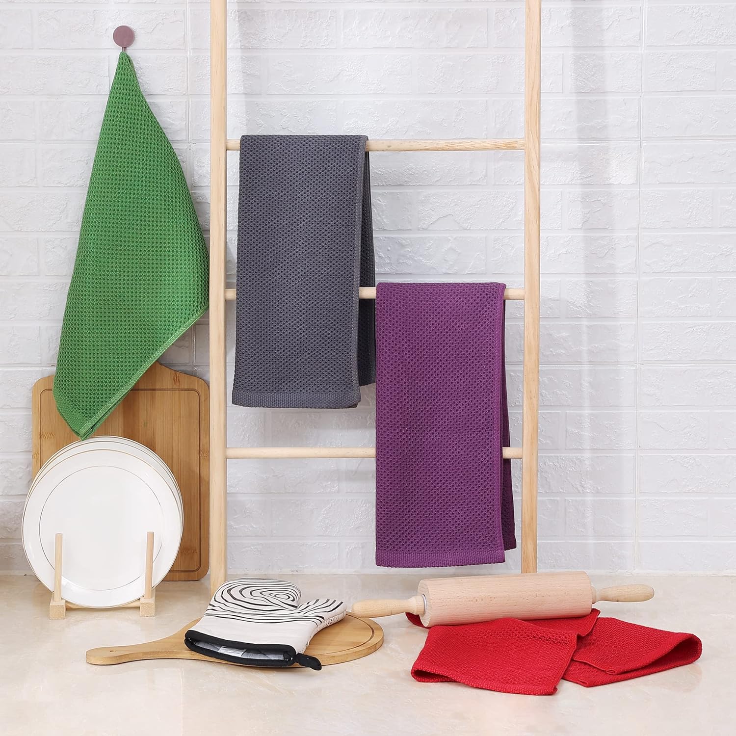 Homaxy 100% Cotton Waffle Weave Kitchen Dish Towels, Ultra Soft Absorbent Quick Drying Cleaning Towel, 13 x 28 Inches, 12-Pack, Purple