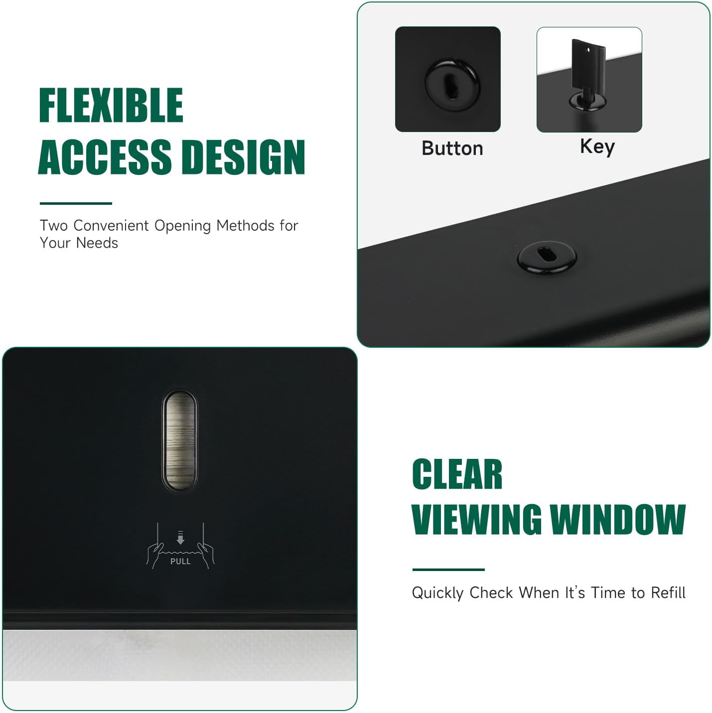Wall-Mounted Paper Towel Dispenser – Fits Tri-Fold Towels up to 10x3.1 Inches, Holds 200 Sheets, Ideal for Home & Commercial Use (Black)