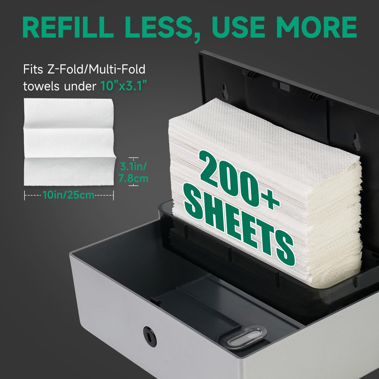 • Fits Z-Fold/Multifold Towels – Compatible with standard Z-fold and multifold paper towels (max 3.1" folded width)