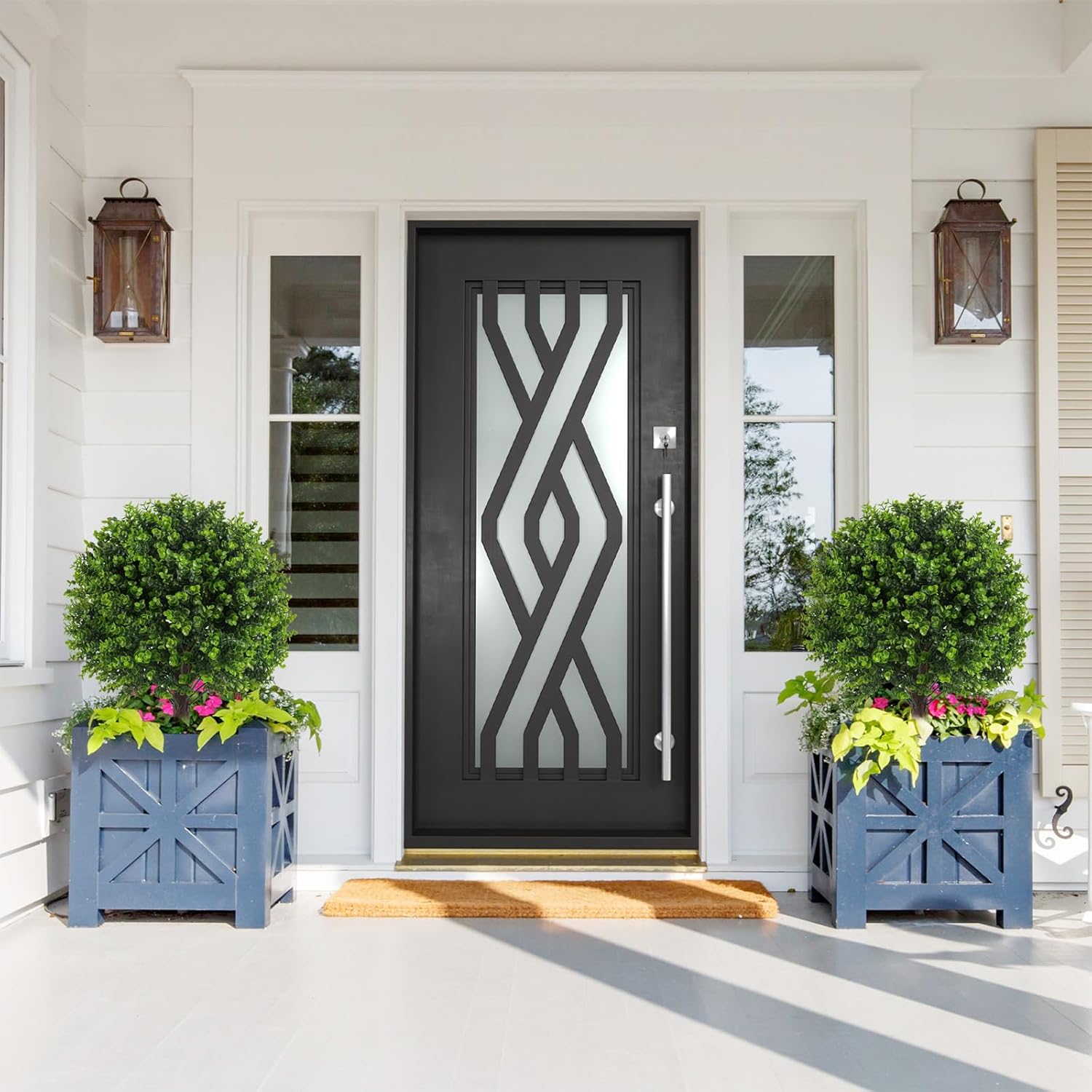 • 【EXCELLENT QUALITY】 The 2 pack of artificial boxwood topiary ball bushes with spikes for outdoor & indoor are made from premium material, designed to be UV resistant, waterproof, and fade proof. Size:22"H x 15"D x 15"W (Including the 4.7 inch height spikes). We have enhanced the density of the leaves making them look more lifelike and lush. The surface of the branches also has features realistic textures