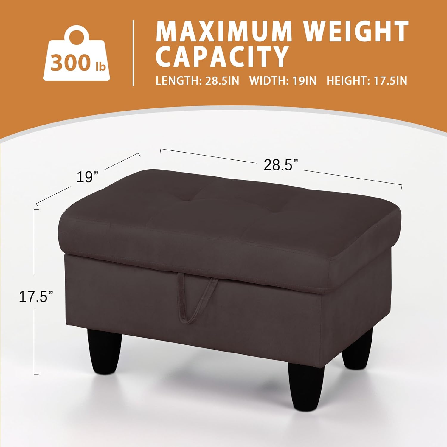 • SIZE & CAPACITY: Measuring 28.5" L x 19" W x 17.5" H, this storage ottoman is crafted to integrate smoothly into any room. With a weight capacity of up to 300 lbs, it provides both a stylish touch and a durable, dependable option for seating or storage in your home.
