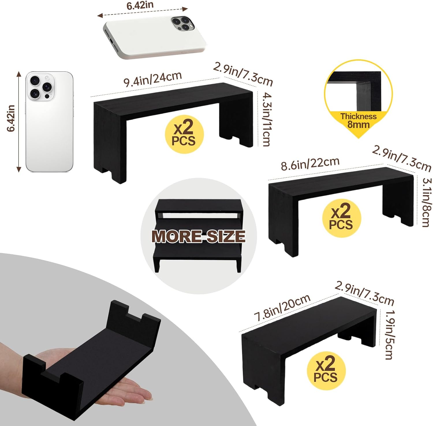 • 【Tierd Display Stands for Vendor】🎁: First they are no need any tools then can be used directly! very convenient to display more items for vendors, they are not only beatiful but also improve space utilization rate, U-shaped wood risers, fire-carbonized, durable, non-toxic, odorless, and no deformation, nested design for easy storage in living room,bedroom,kitchen,indoor,outdoor, also can be used individually or as a set.
