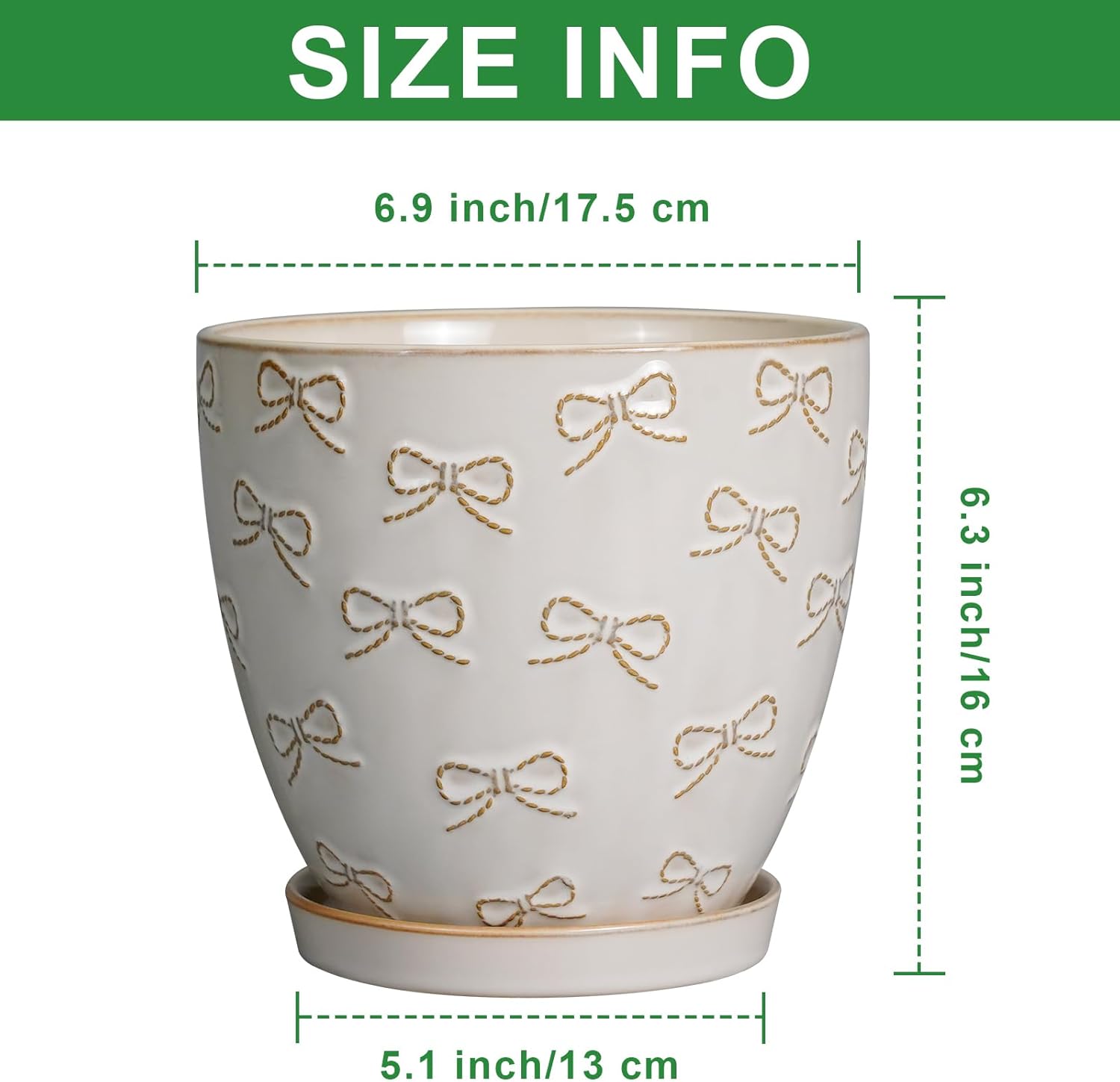 • Stylish Appearance: Our ceramic plant pot has a white main colour, a beautiful embossed bow tie pattern on the surface, elegant appearance making it ideal for home decor, garden decor and office decor