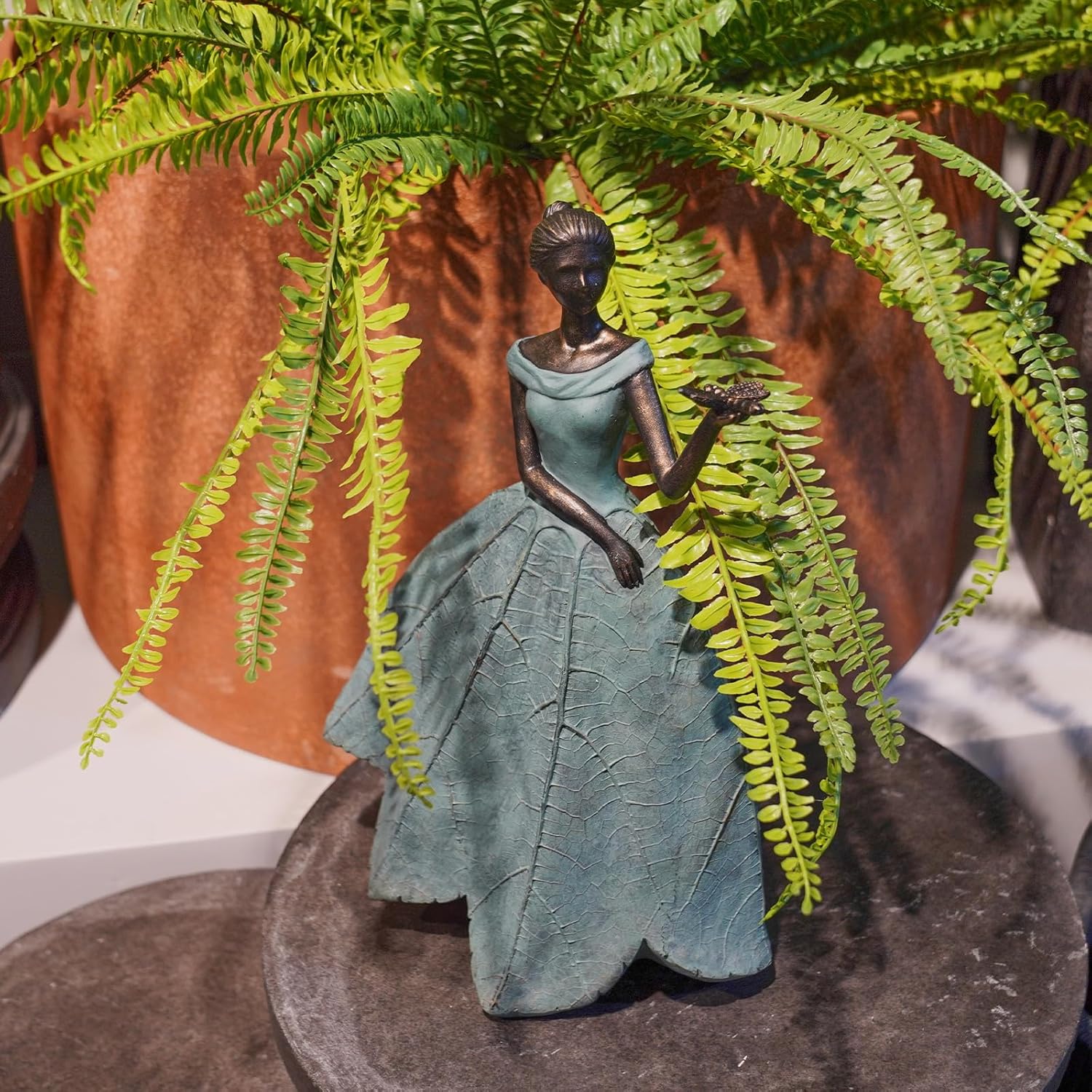 • Fairy Statue: Do you think your garden is too drab? Our leaf Angel girl statue product is originally designed by the designer. The skirt is in the shape of a leaf with the delicate texture of a leaf, which looks very artistic. It can add a different aesthetic feeling to your room or garden.