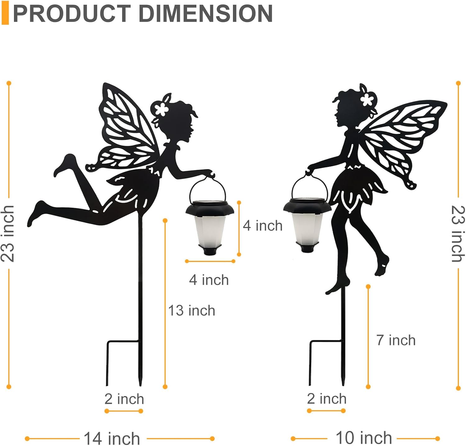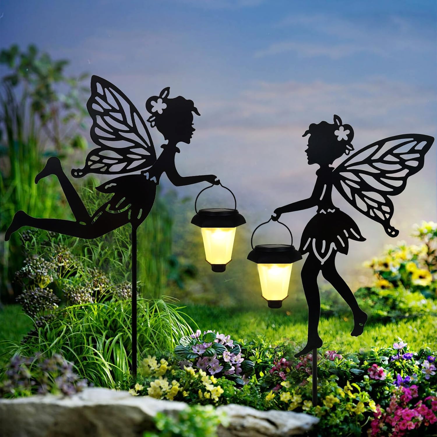 Solar Fairy Garden Stake Decorative Lantern, 2 Pack Metal Fairy Angel Garden Silhouette Lights for Lawn, Pathway, Patio, Yard Outdoor Decor