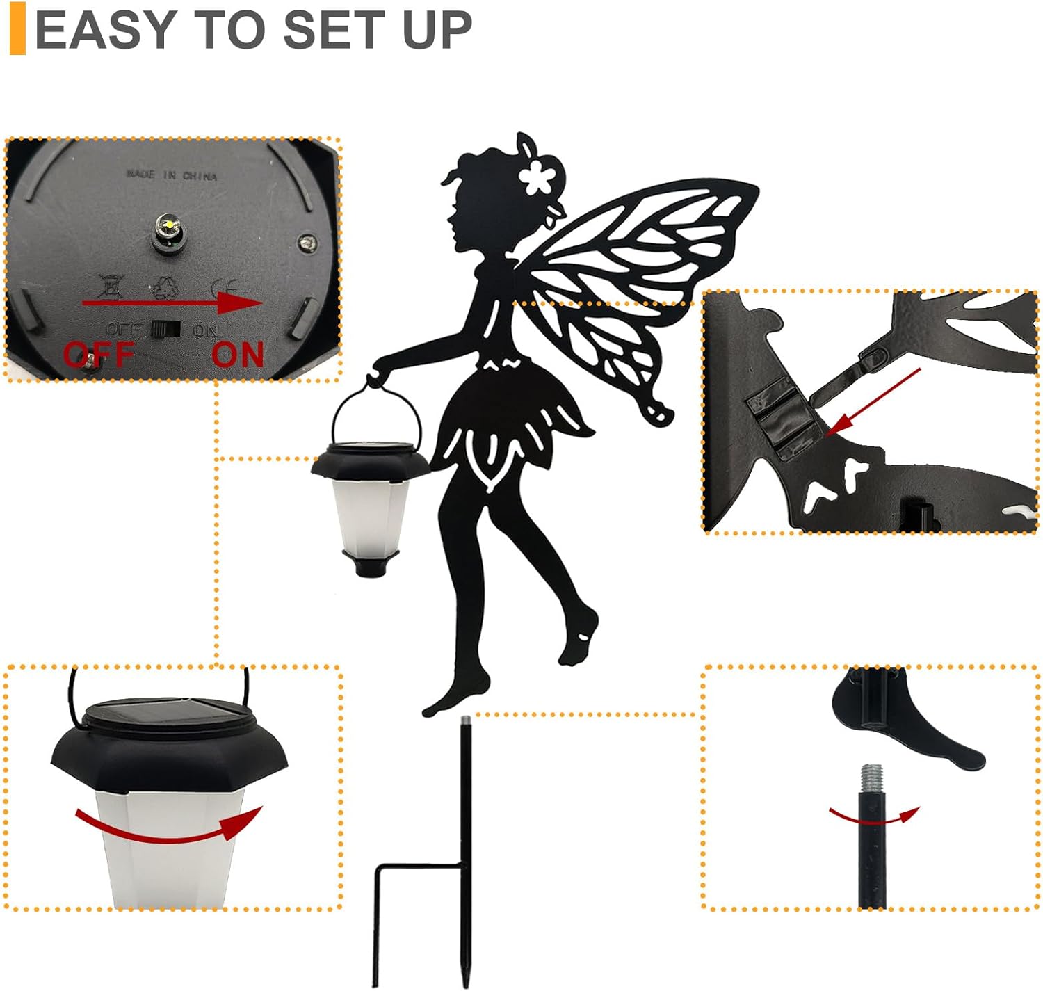 • Easy to Use: No additional tool is required, just screw the ground stakes and fairy statues together by hand, Then attach wings to the fairy statues and hang the light. Simply insert them in a sunny location and you will enjoy your garden ornament