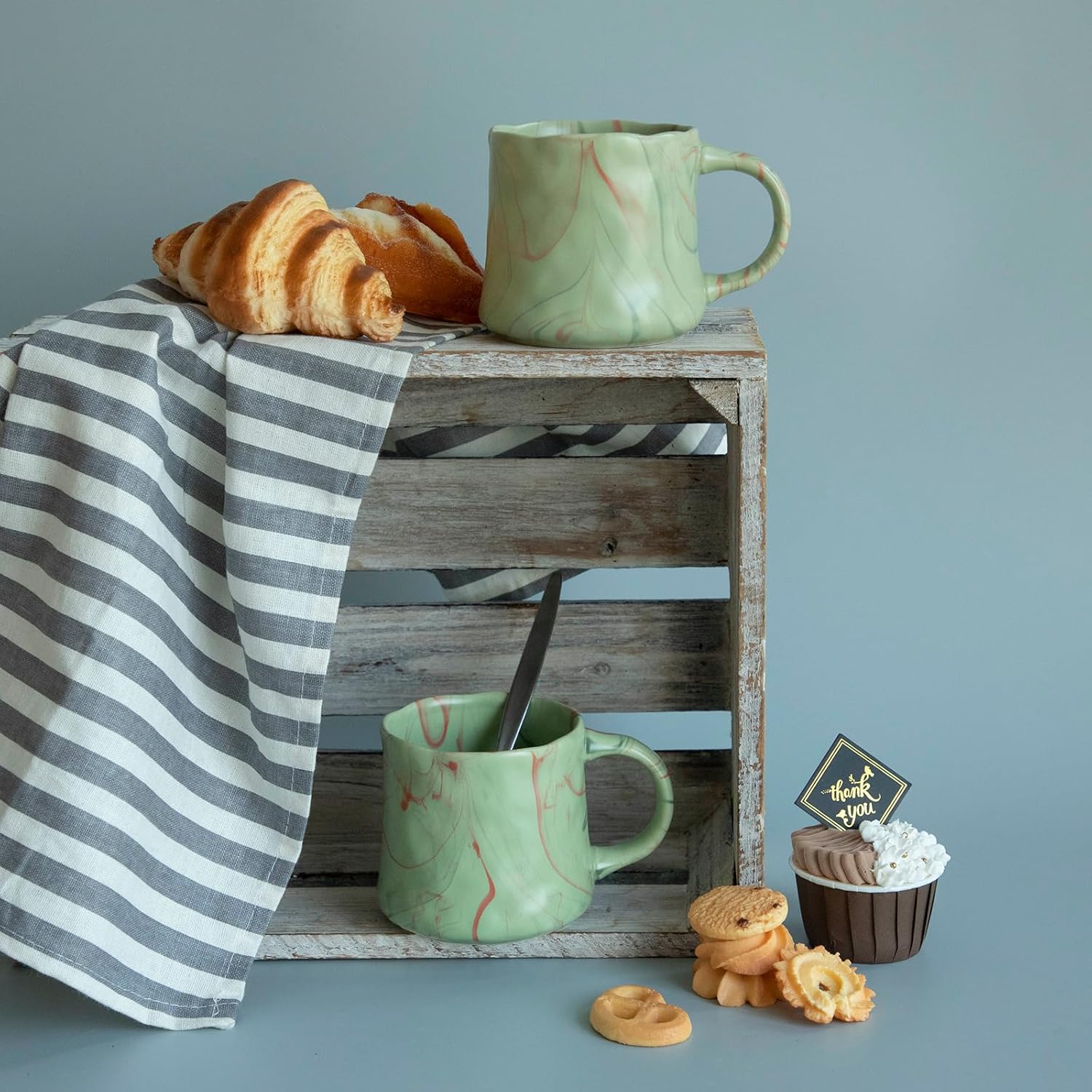Abstract Art Ceramic Coffee Mugs Set - 2 Pack, Mint Green with Red and White Accents, Handcrafted Design for Modern Kitchen or Office