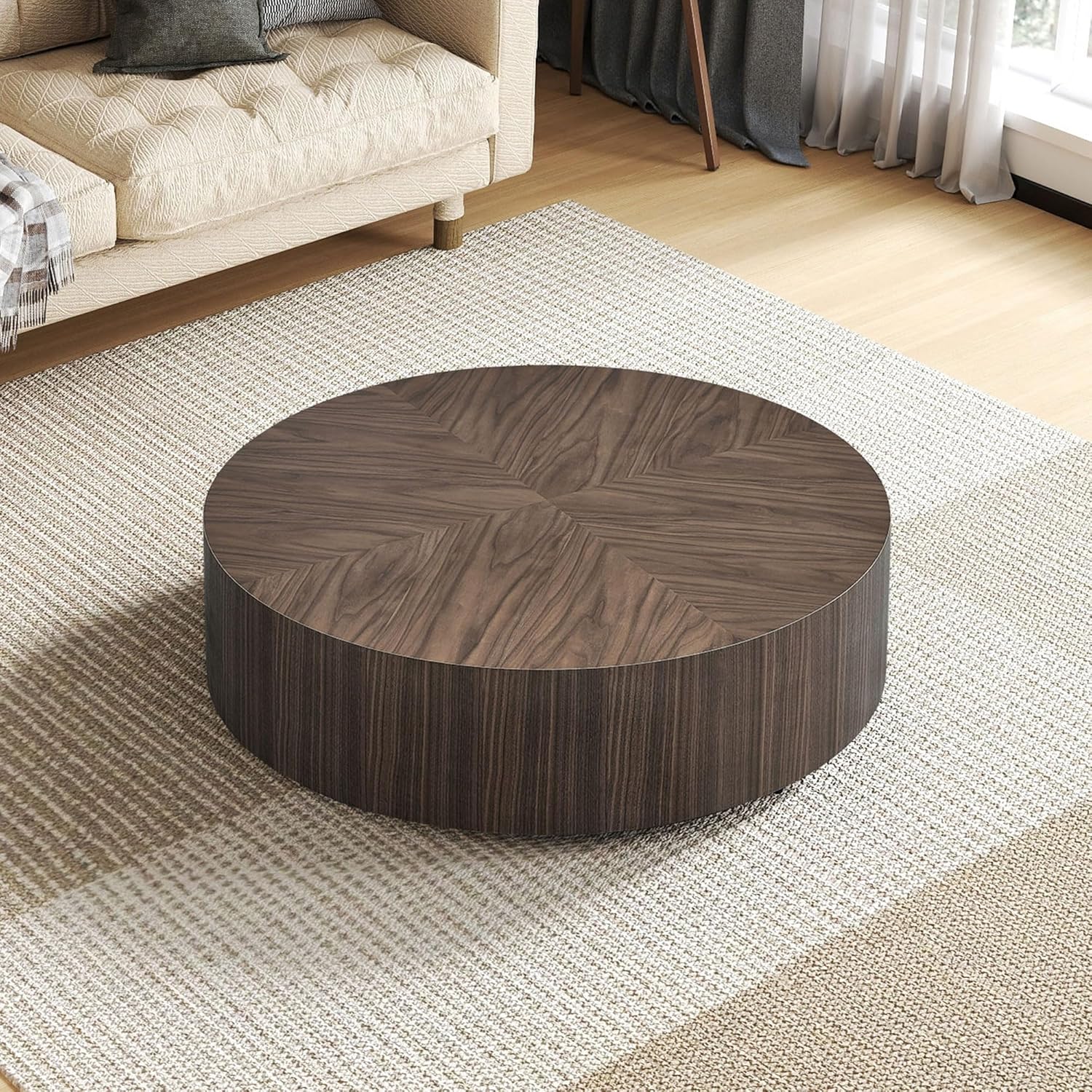 LATBASK 35.5" Round Coffee Table,Rustic Dark Wood Finish,Modern Minimalist Low-Profile Coffee Table for Living Room,Scandinavian Industrial Style,Compact Round Center Table for Small Spaces (Walnut)
