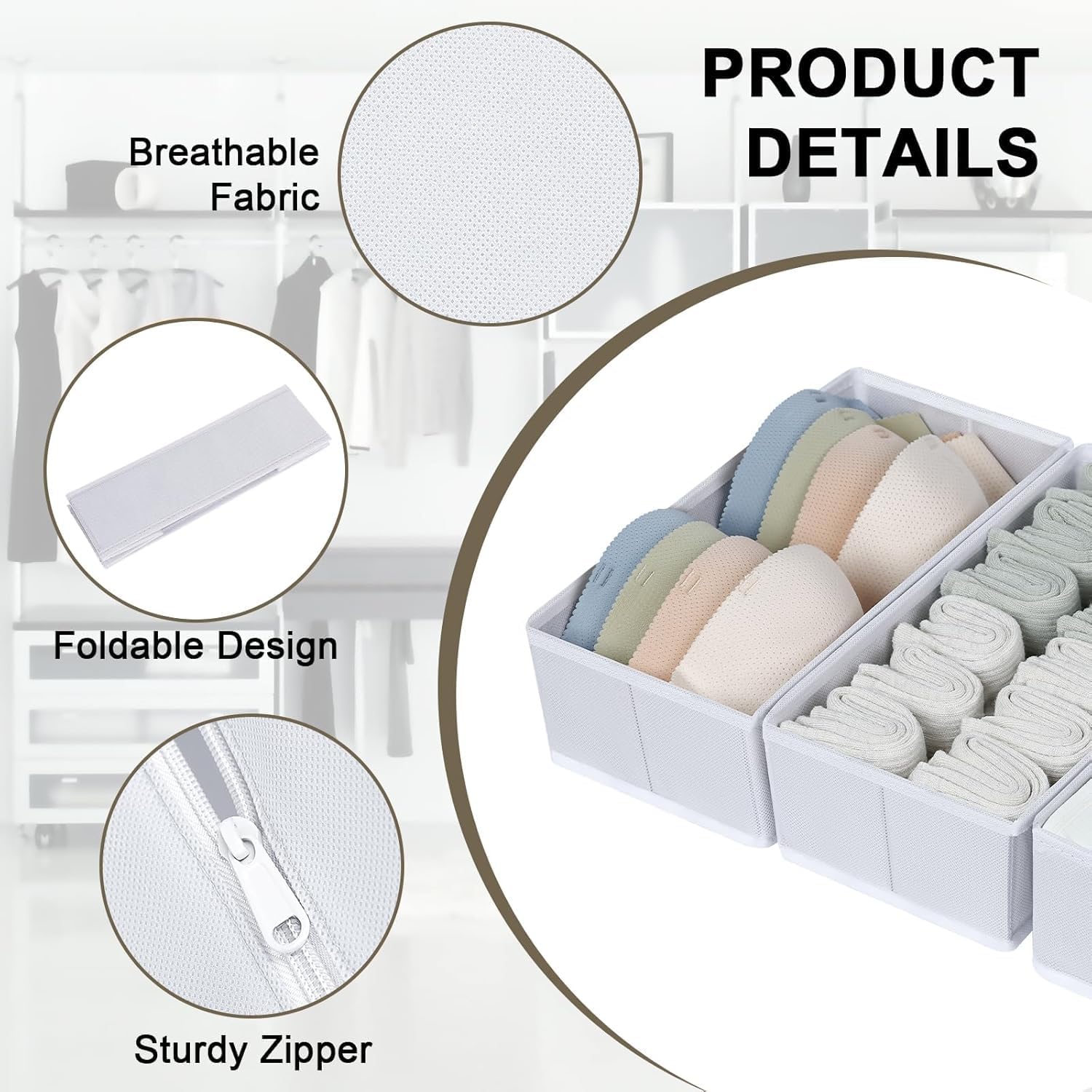 • [Perfectly matching your drawers] : This clothes organizer set includes 18 storage bins in various sizes to fit all your needs: 6 large (11.8*11.8*3.54"), 6 medium (11.8*5.9*3.54"), and 6 small (5.9*5.9*3.54"). Great for organizing clothes, sock, underwear, bra, baby clothing, scarves, shirt, pants, belt, ties, bikini and more