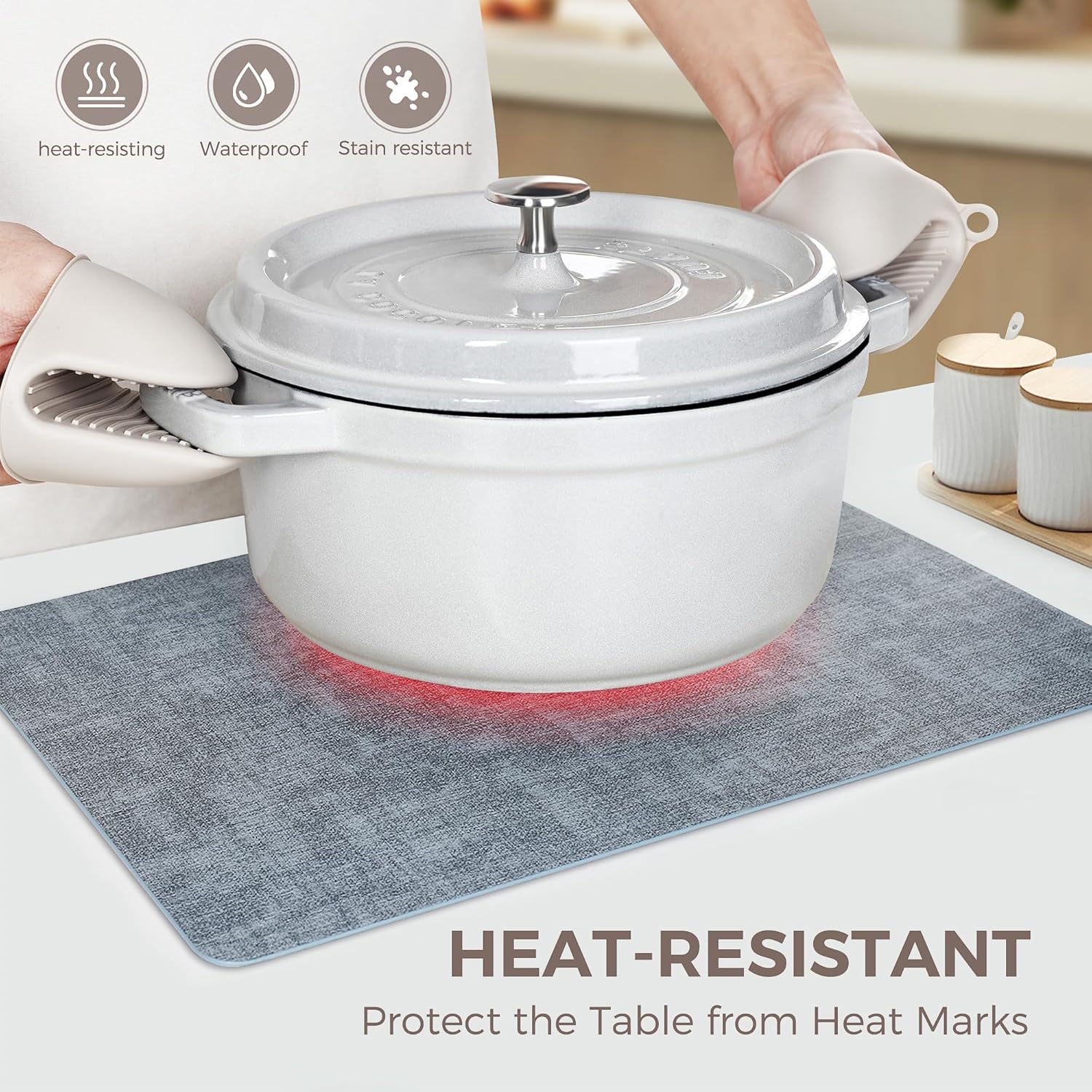 • HEAT RESISTANT PLACEMATS: These placemats can resist high temperature, avoiding leaving heat marks during meals, which is work great for hot dishes. Meanwhile, the placemats have a beautiful color, non-slip surface and easy to recover from creases