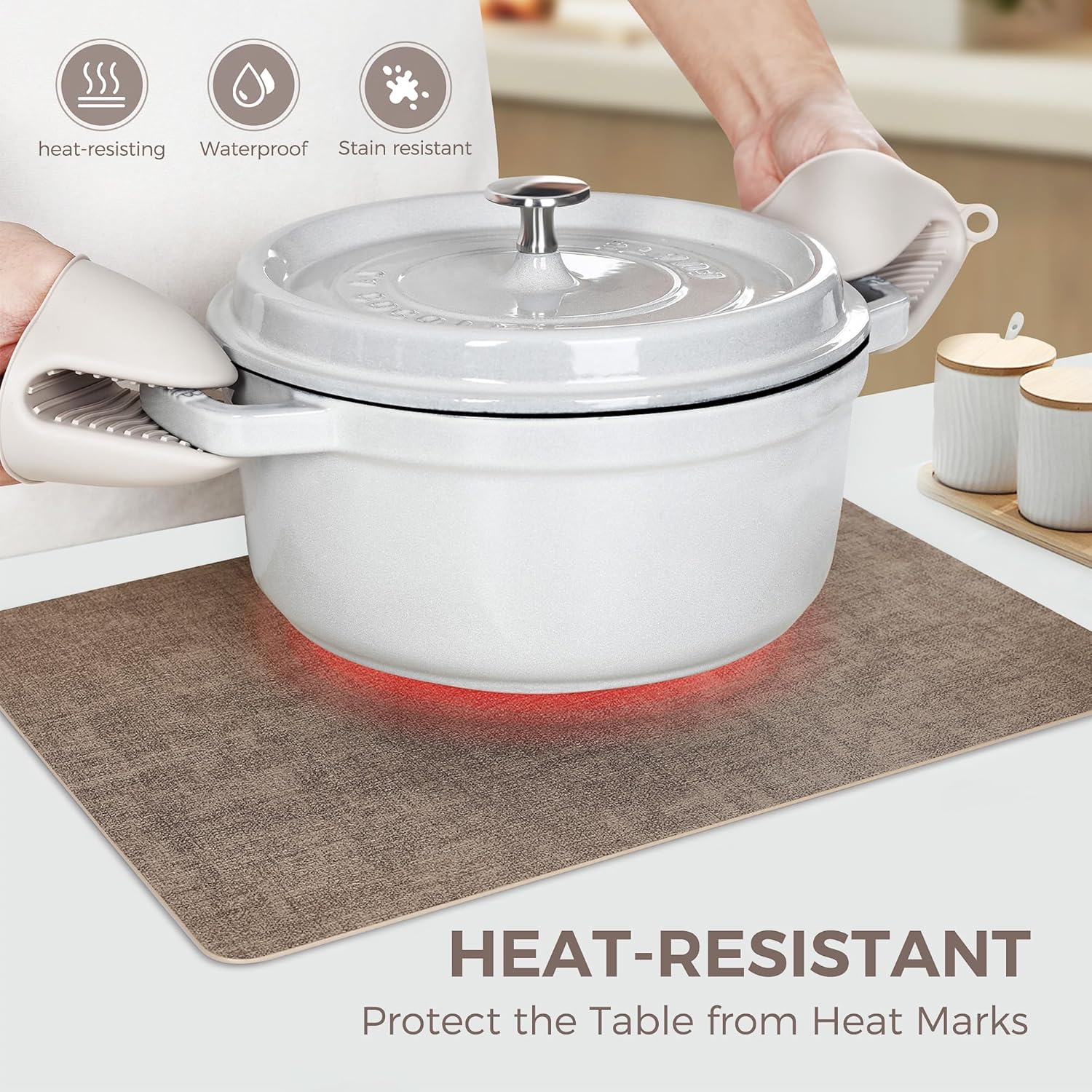 • WATER & OIL RESISTANT: When liquid is spilled on the placemat during daily use, it can be easily wiped away to ensure that water vapor will not seep in. Wipeable placemats keep the table clean and tidy at mealtimes, preventing grease stains on tablecloths