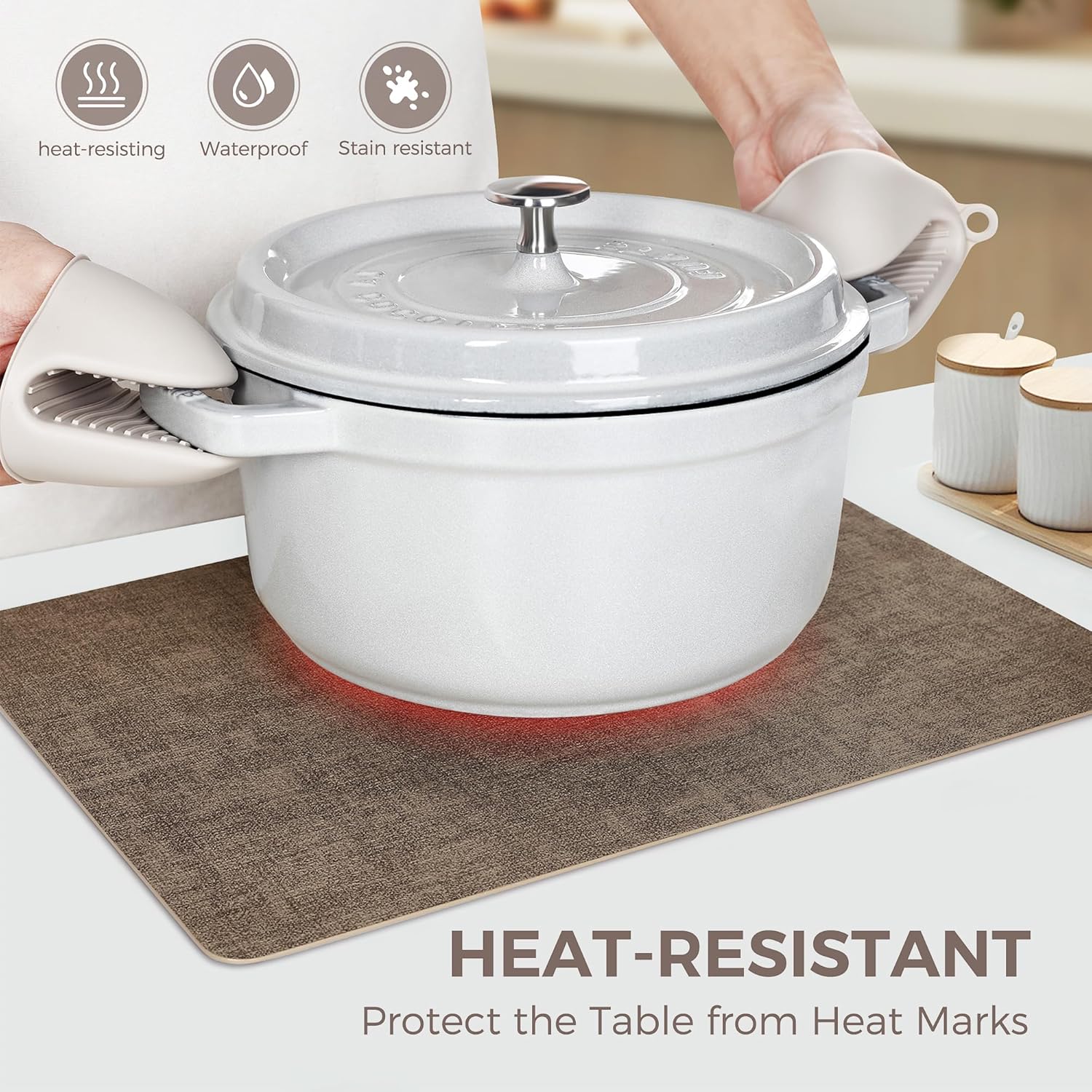 • WATER & OIL RESISTANT: When liquid is spilled on the placemat during daily use, it can be easily wiped away to ensure that water vapor will not seep in. Wipeable placemats keep the table clean and tidy at mealtimes, preventing grease stains on tablecloths