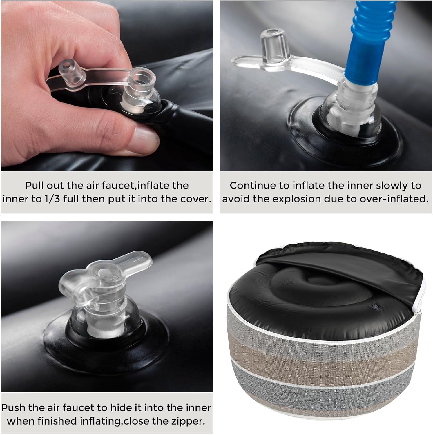 • 【Widely Used】-Inflatable ottoman can be a great addition to a living room or family room, where it can serve as extra seating or a footrest. Also a great option for outdoor spaces like patio, garden or pool areas, where they can provide extra seating or a place to rest your feet.