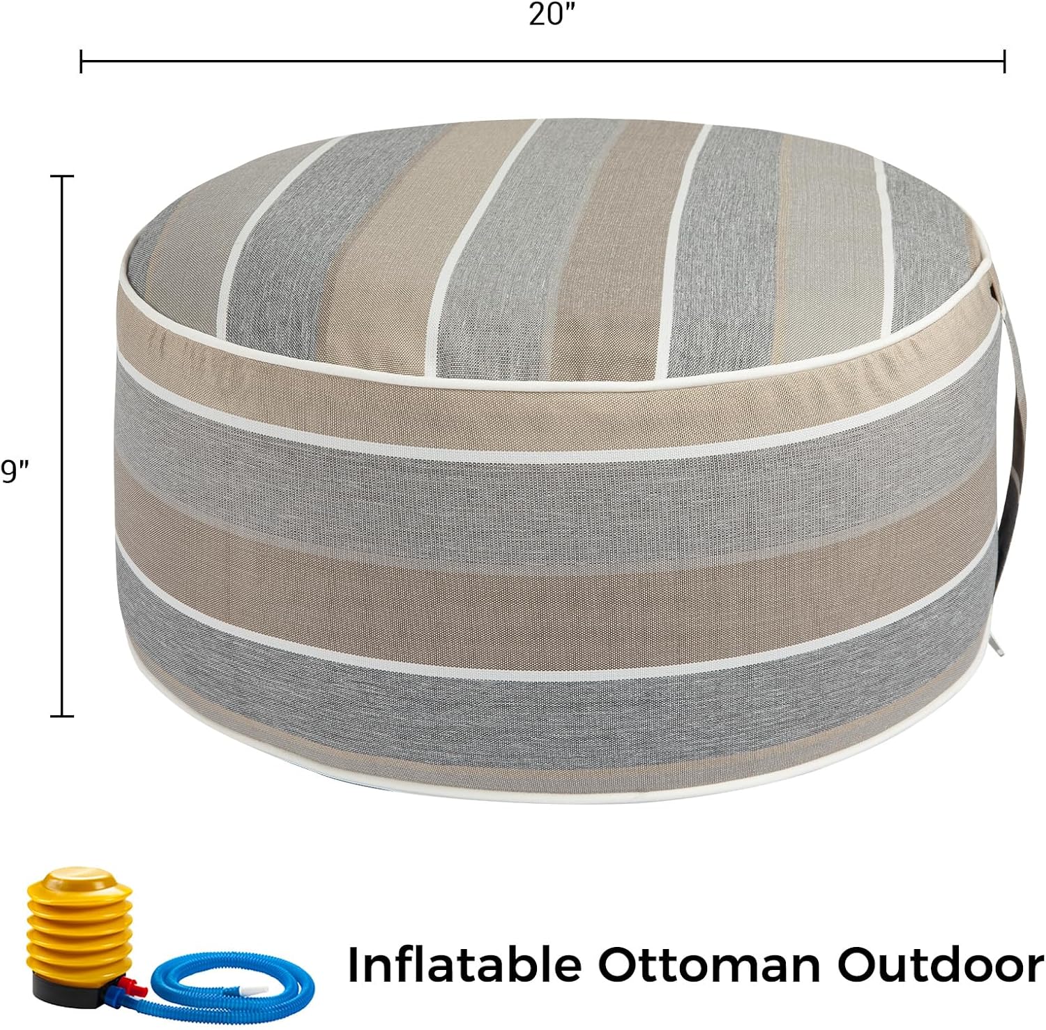 FUNHOME Inflatable Outdoor Ottoman with Air Pump,20"x9" Portable Patio Pouf,Water Resistant,Fade-Resistant,Round Blow Up Footrest Stools for Home Garden Camping Travel(Gray Stripe)