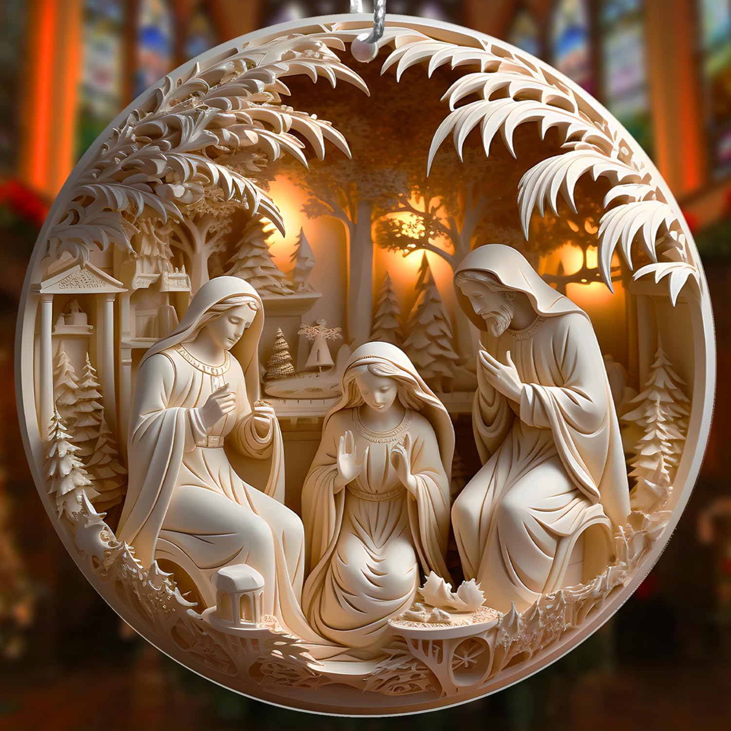 Jabihome Christmas Ornaments 2025, Exchange for Women, Men, Collectible Dated Year Ornaments for Tree, Unique Acrylic Suncatcher, Printed Stained Glass Effect Decor (Nativity Scene)