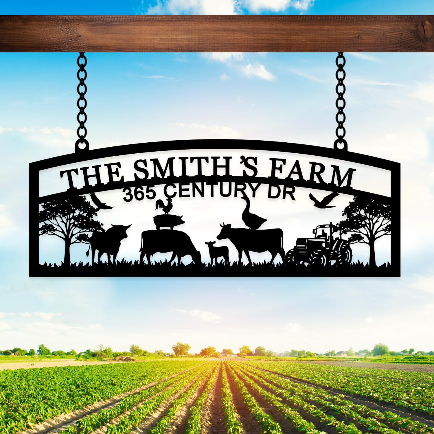 • Personalized Farm Design: Custom designed Hanging Metal Farm Sign, complete with your last name, is the perfect addition to your farm or rural property. The personalized design adds a touch of unique rustic charm to your home.