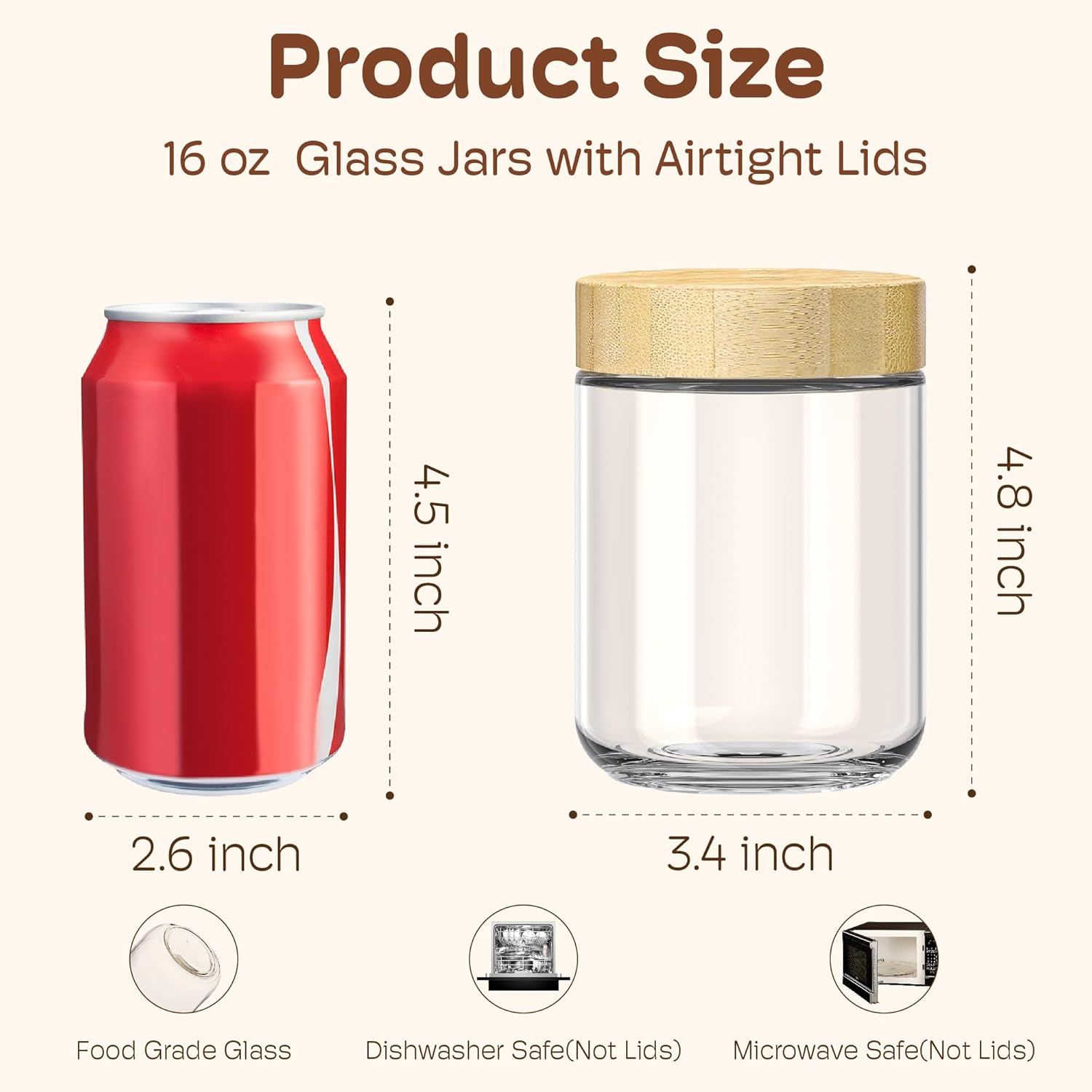 • [ Versatile Airtight Glass Jars for All Your Needs ]: Beyond overnight oats containers with bamboo lids, these glass storage containers with bamboo lids excel as yogurt jars, chia seed pudding jars, salad storage jars. Use them for homemade jams, pickles, sauces, spice, or even for craft projects and decorative displays. From food storage to DIY decor, their aesthetic design and functionality makes them seamlessly fit into any kitchen or home decor, making them an essential item for every home