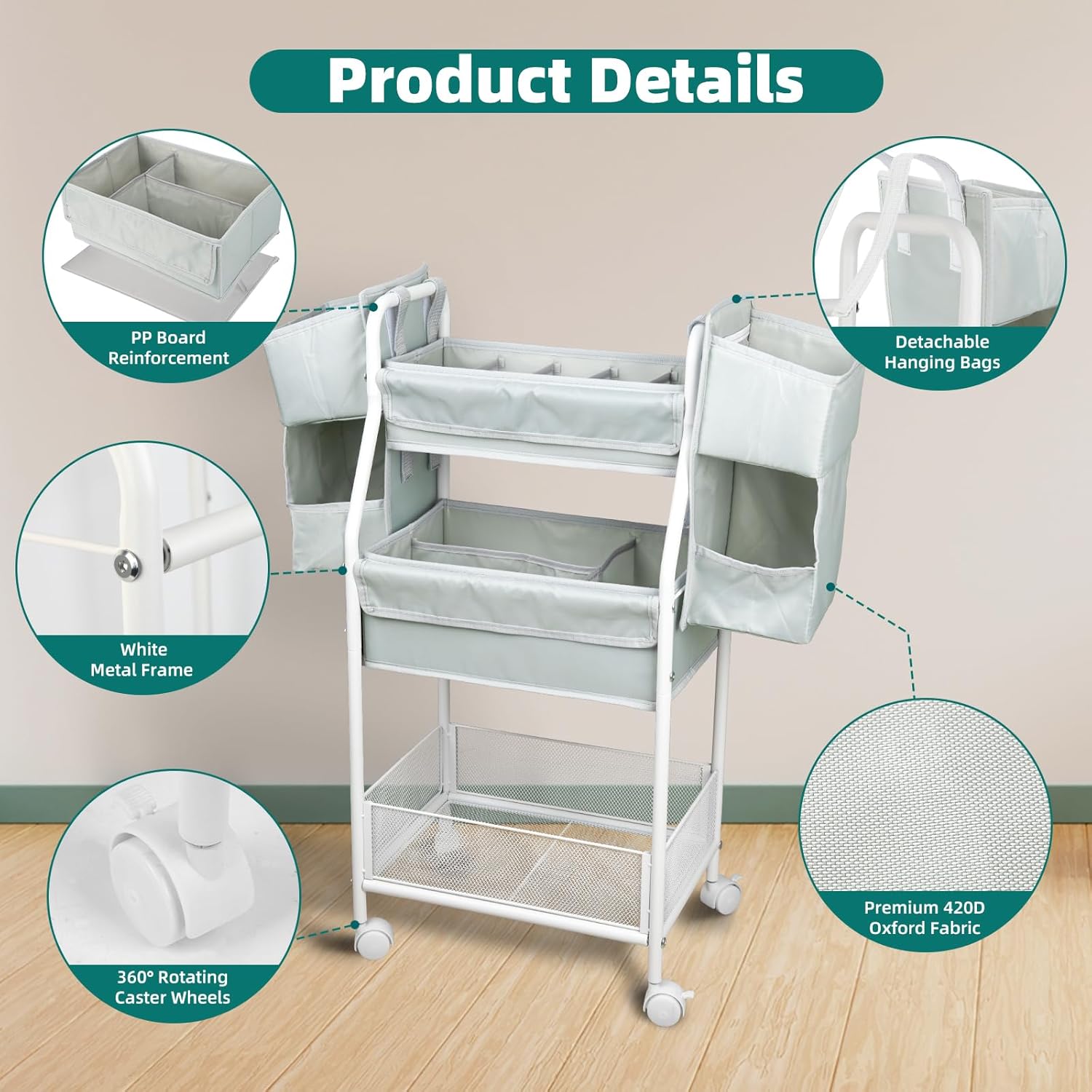 • Premium Materials & Stylish Design: Made with durable fabric and PP plastic, this storage cart is both sturdy and modern and perfect for room organizers and storage or baby nursery essentials.
