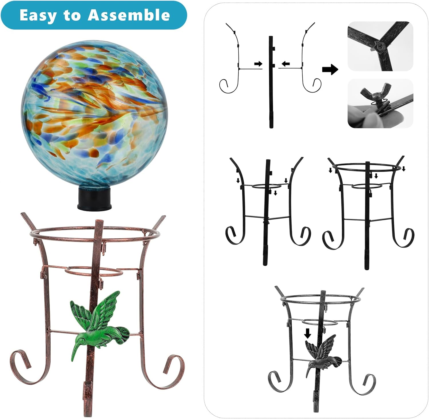 • Exquisite Design: The glass gaze globe designed with swirls of color for an unique artisanal look and copper gazing globe stand with a green hummingbird decor, this exquisite gazing ball with holder set will catch the eyes of garden lovers and interior decorators alike, adding a different kind of surprise while providing your home with a gorgeous decoration