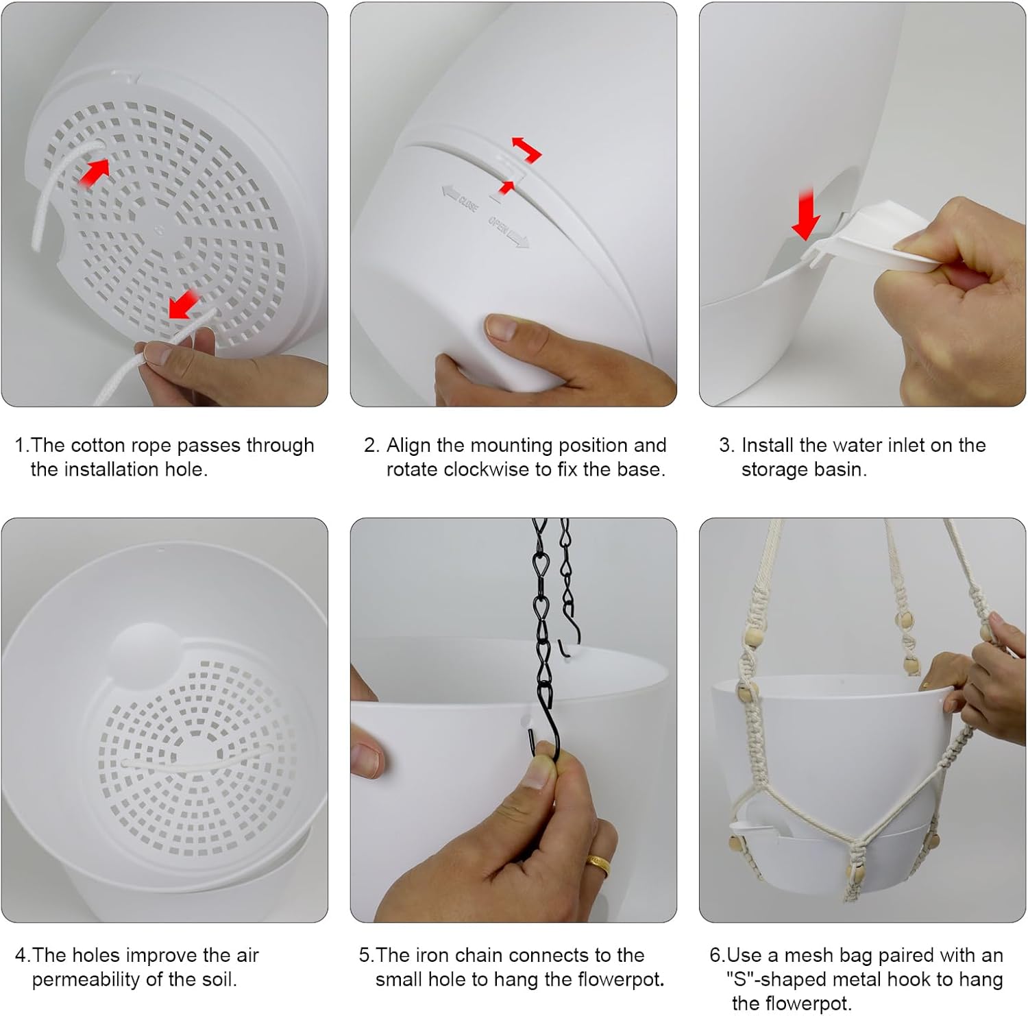 • 【Self-Watering Hanging Planter with Removable Tray】This hanging flower pot comes with a detachable bottom tray that acts as a water reservoir, holding a good amount of water. When your plant needs water, it’s absorbed through cotton wicks from the reservoir to the soil, reducing how often you need to water