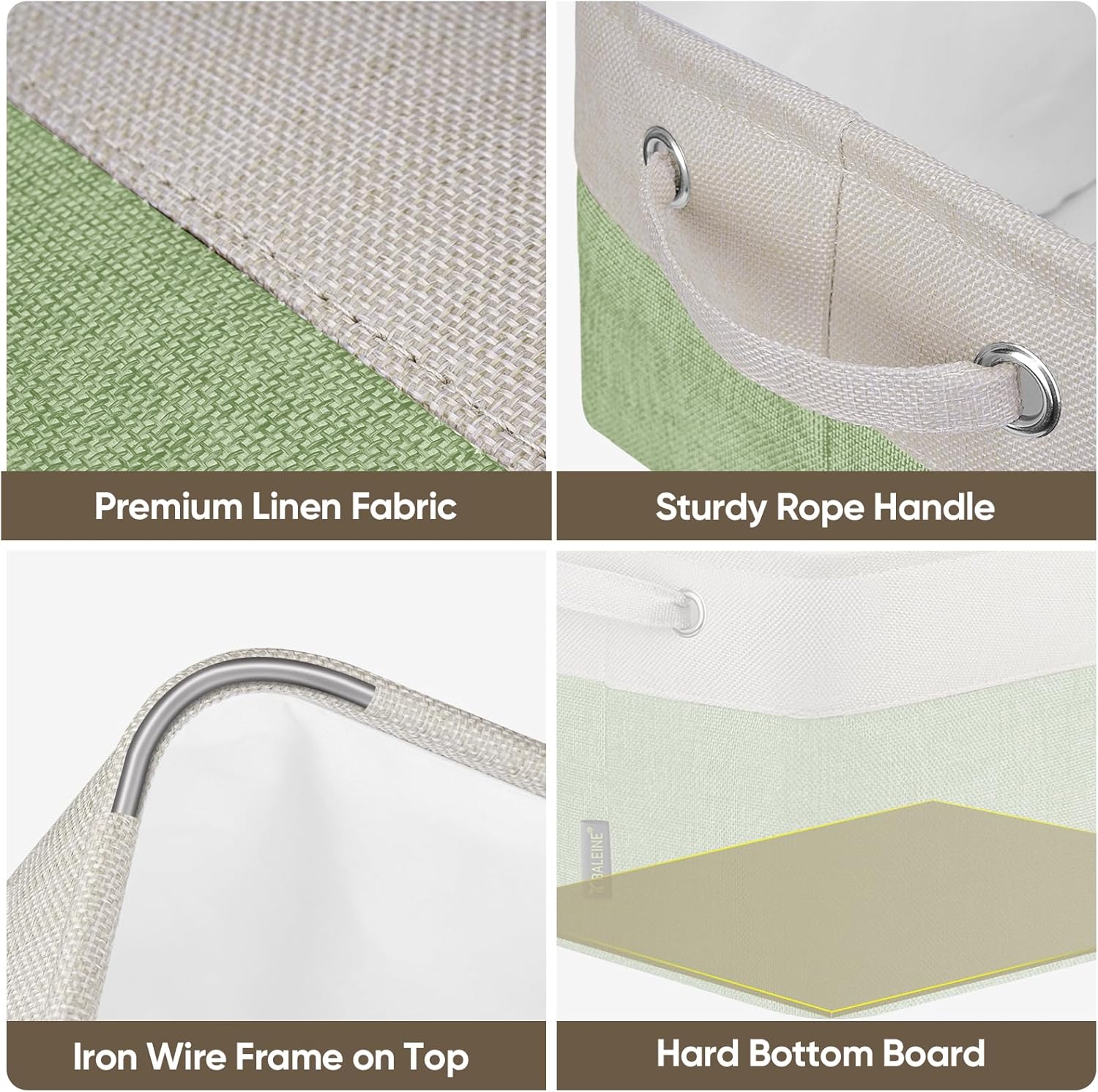 BALEINE 3 Pack Fabric Storage Bins for Shelves, Linen Storage Baskets for Organizing, Decorative Closet Bins for Clothes, Home (Green, 15''x11''x9.5'')