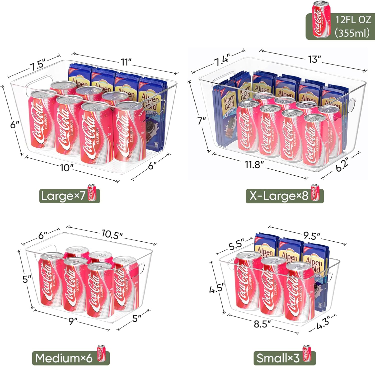 • [OPTIMAL DESIGN] Measuring 13"(L)x7.4"(W)x6.2"(H), this storage bin offers ample space for your kitchen essentials. It perfectly fits in cabinets, pantries, refrigerators, and countertops, making it an ideal choice for various storage needs. The transparent design provides clear visibility of the contents, eliminating the need for constant searching. The open front ensures easy access, allowing you to retrieve items quickly without hassle