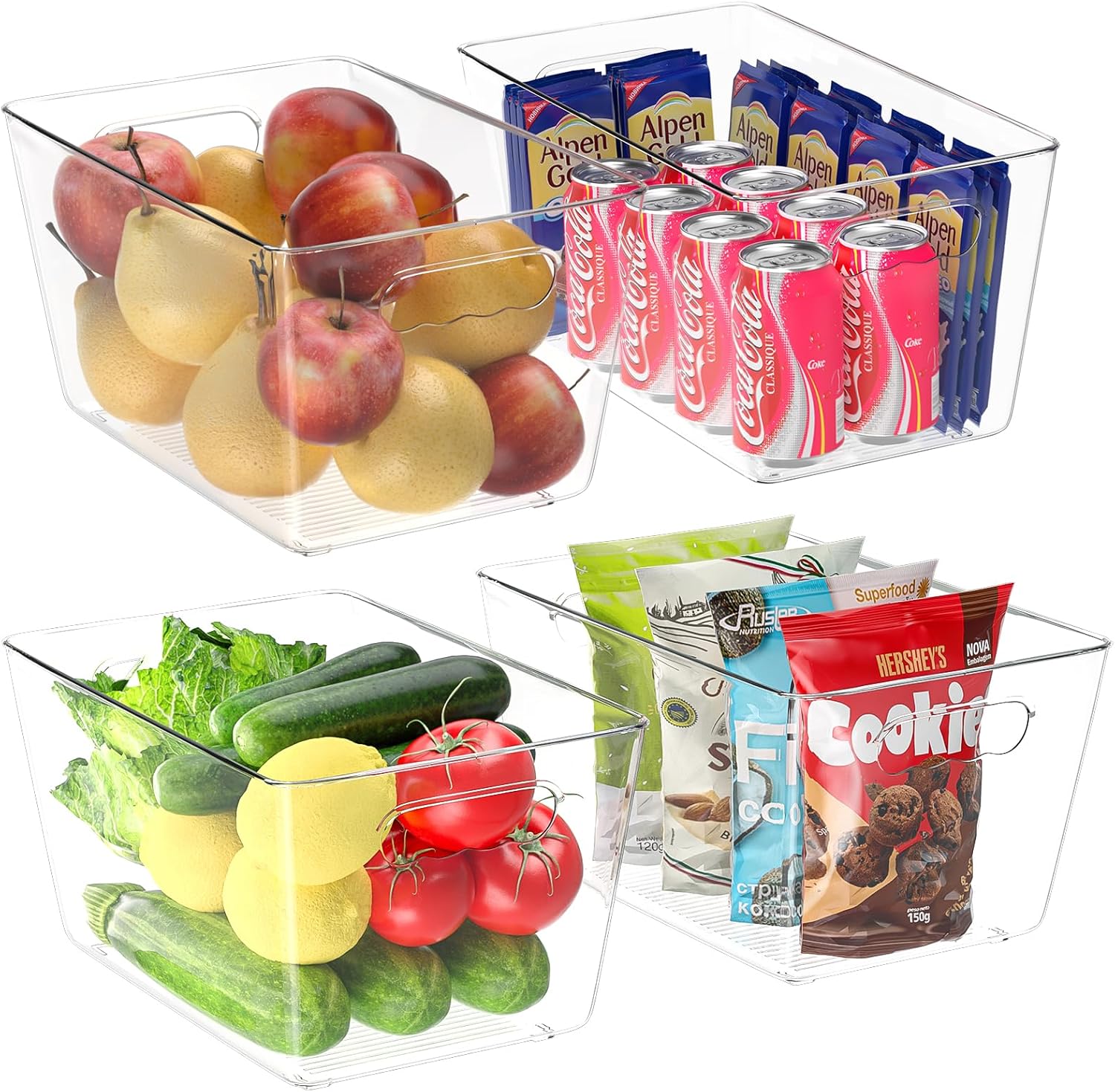 BALEINE Clear Plastic Storage Bins, Pantry Organization, BPA Free Stackable Refrigerator Organizers and Storage with Handles for Kitchen Fridge Cabinet Bathroom (4PK, 13x7.4x6.2)