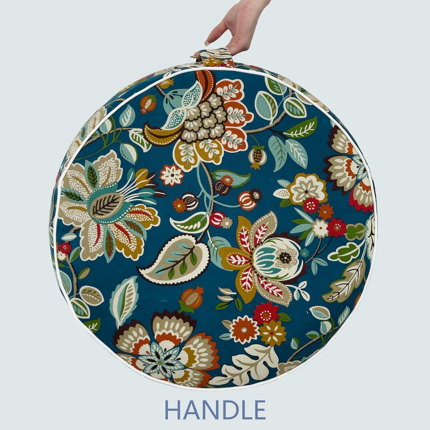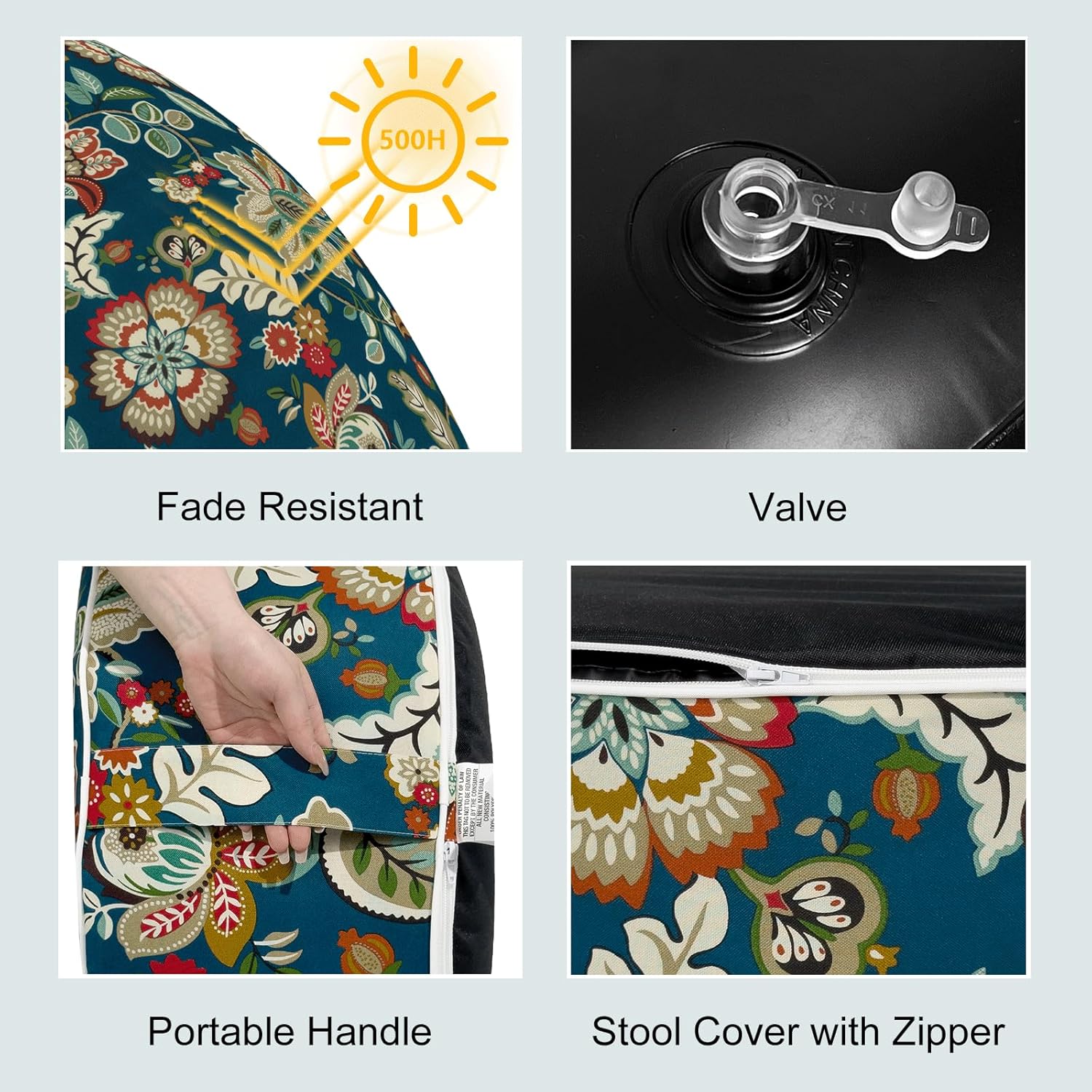 LVTXIII Inflatable Stool Ottoman Footrest with Handle, All Weather Foot Rest, Indoor or Outdoor Use for Home Patio Garden and Camping, D21 x H9, Peacock Blue