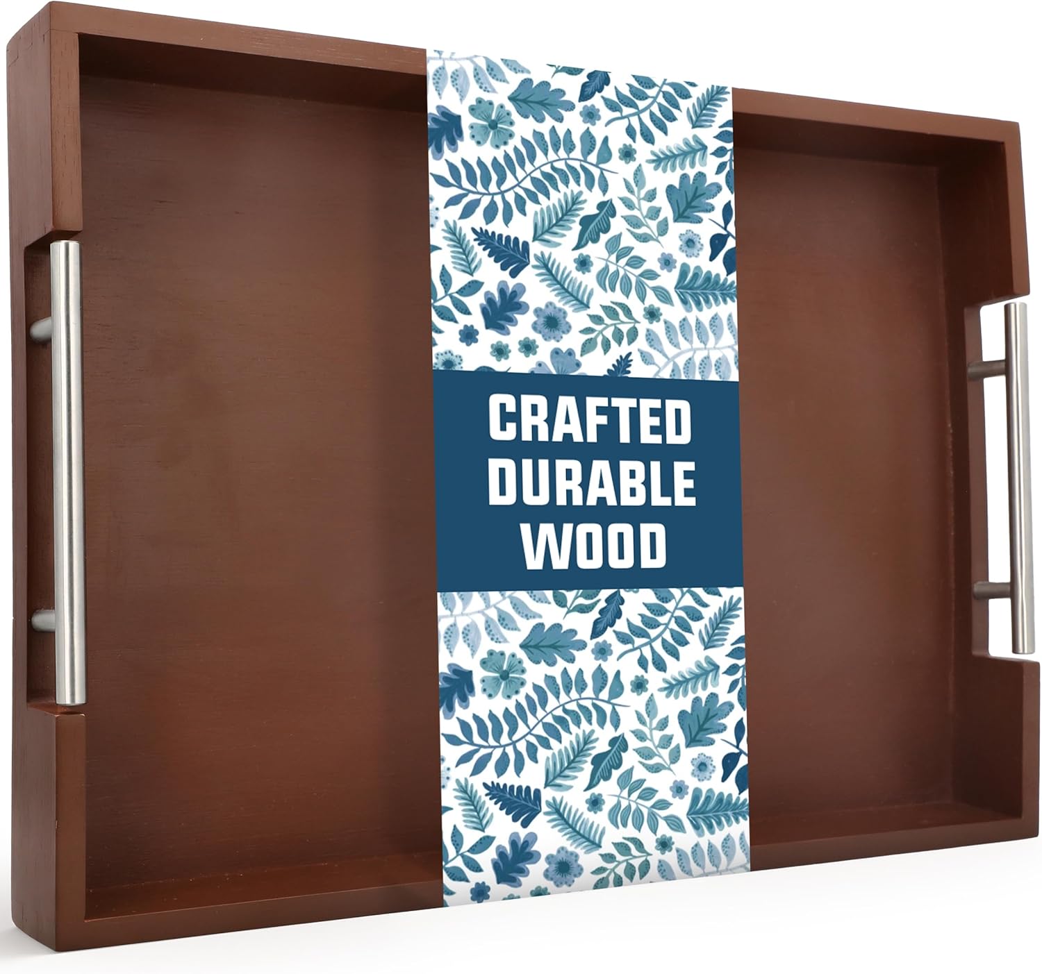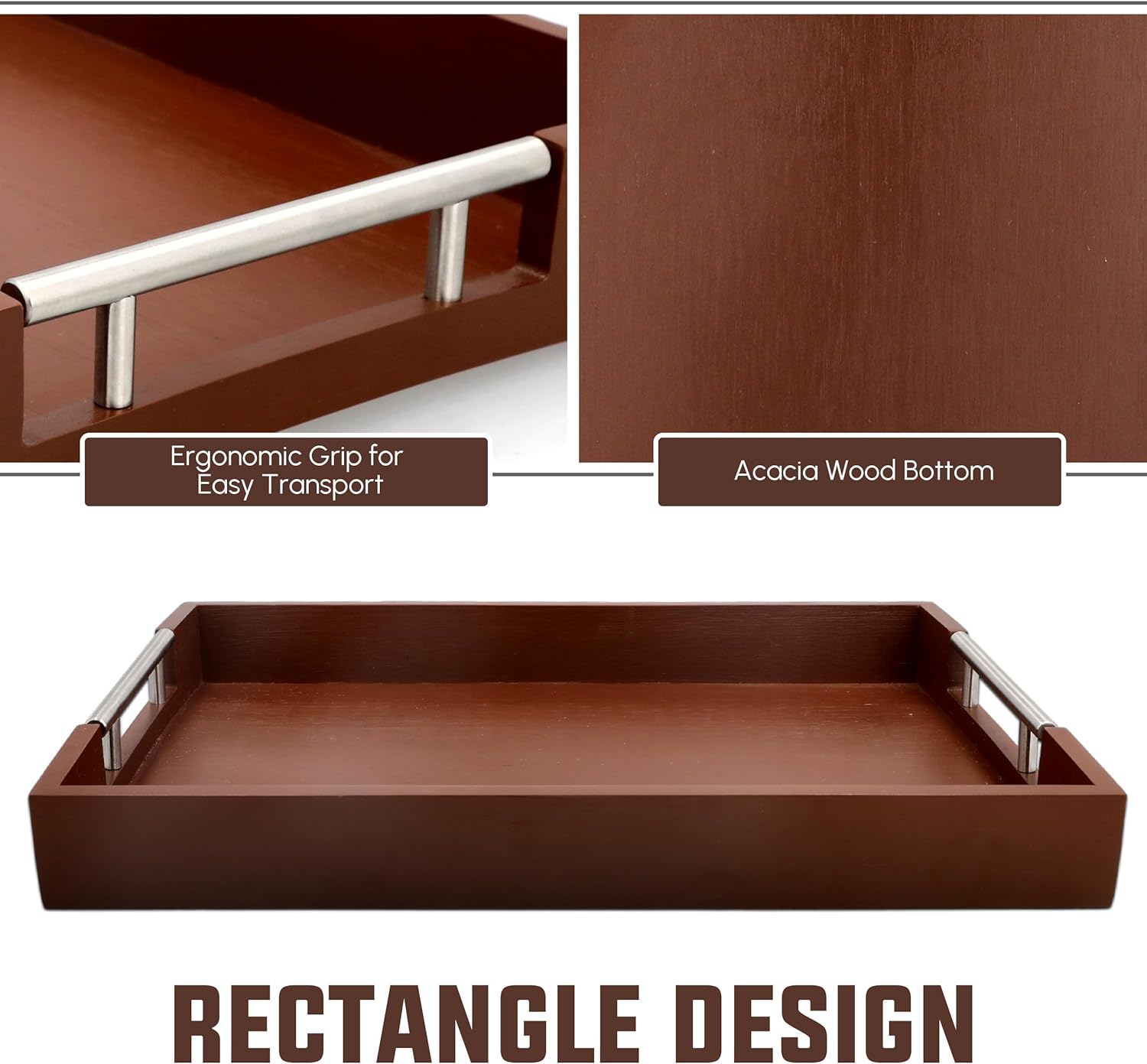 • Multi-Purpose Wooden Tray - Serve breakfast in bed, carry drinks, or create a charcuterie board with this 17x13" Acacia wood tray. Its light mahogany brown finish and sturdy handles make serving effortless and elegant.