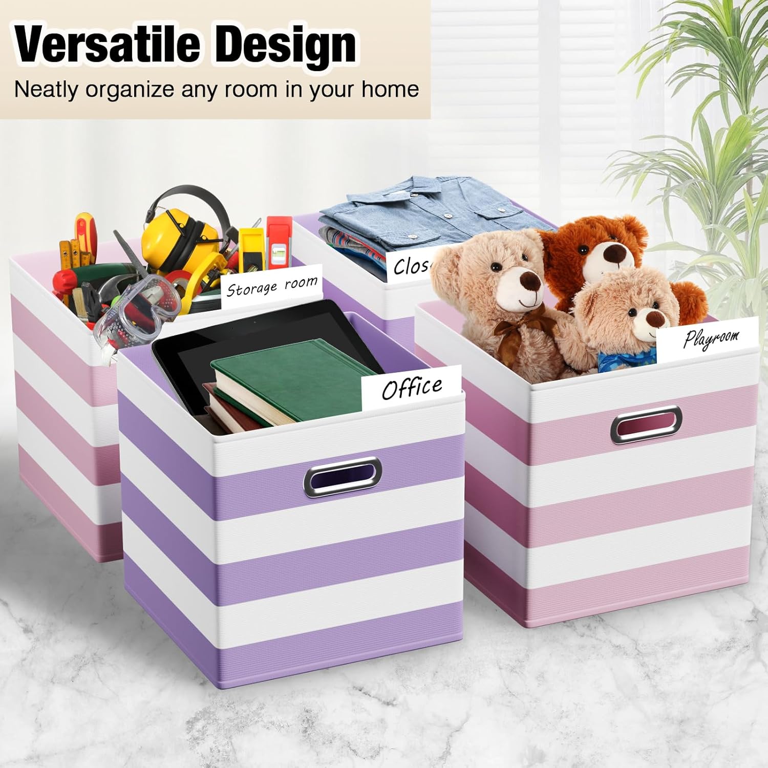 • What You Get: you will receive 6 pieces of d fabric storage cubes in purple and pink, 3 of each color; Each bin measures 10½"L x 10½"W x 11"H, perfectly sized to slot into your existing shelves or cabinets, adding a splash of color while keeping your space tidy