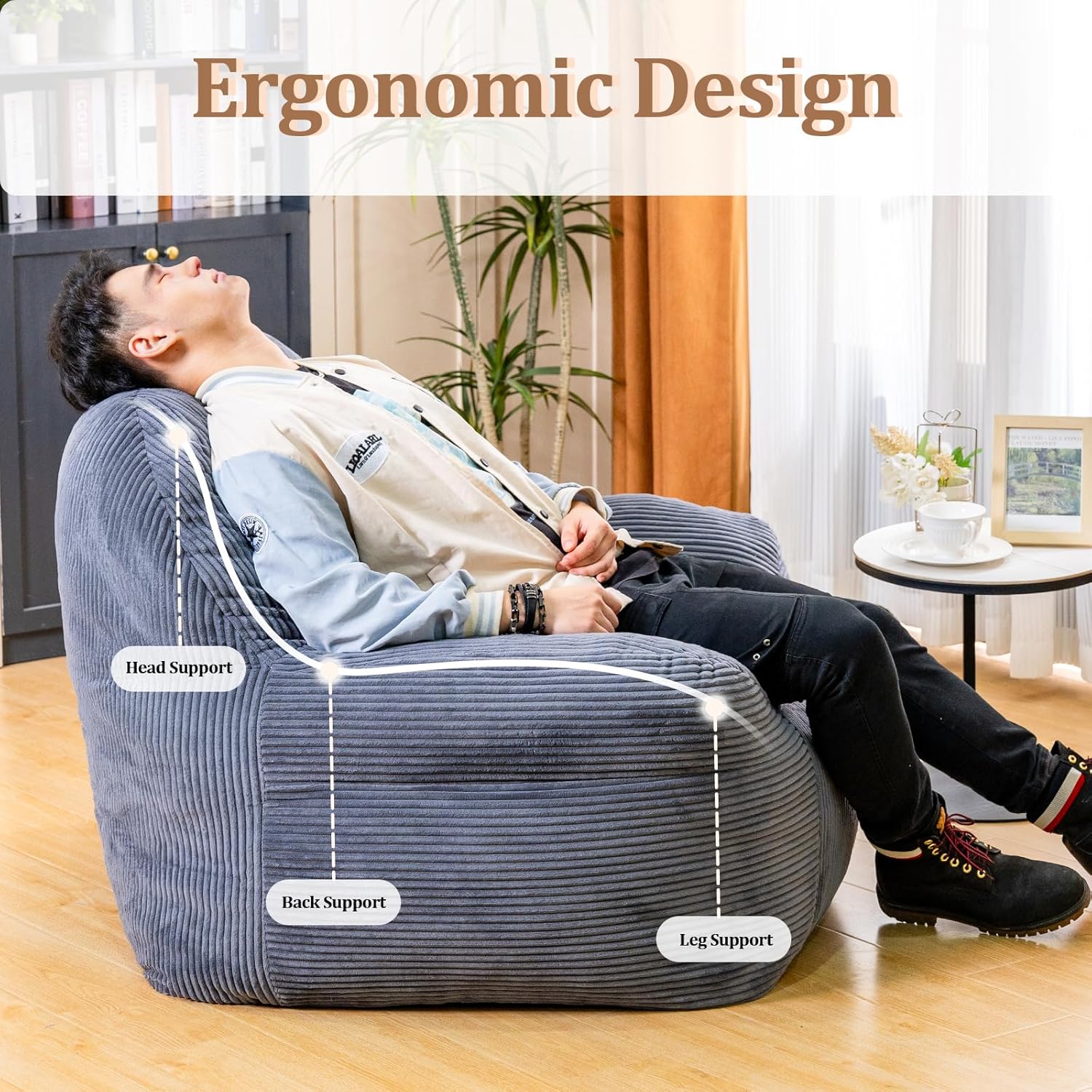 • Quality Filling Bean Bag chair:This bean bag chair is filled entirely with high quality, high density, high resilience memory foam. The bean bag chair gives reliable support, offering a comfortable sitting experience. Foam bean bag chairs are extremely durable and retain their shape over extended periods of use.