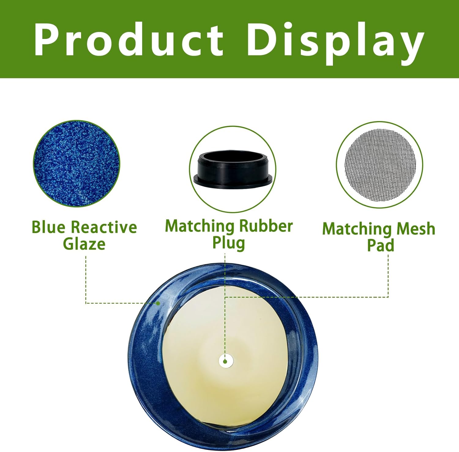 • Sufficiently Large Size: Our ceramic pot for plants is 13.39'' X 13.39'' X 5.91''. Packaging Includes: a bonsai planter, drainage plug, and mesh pad. Thoughtfully packaged to ensure your succulent pot arrives in complete condition