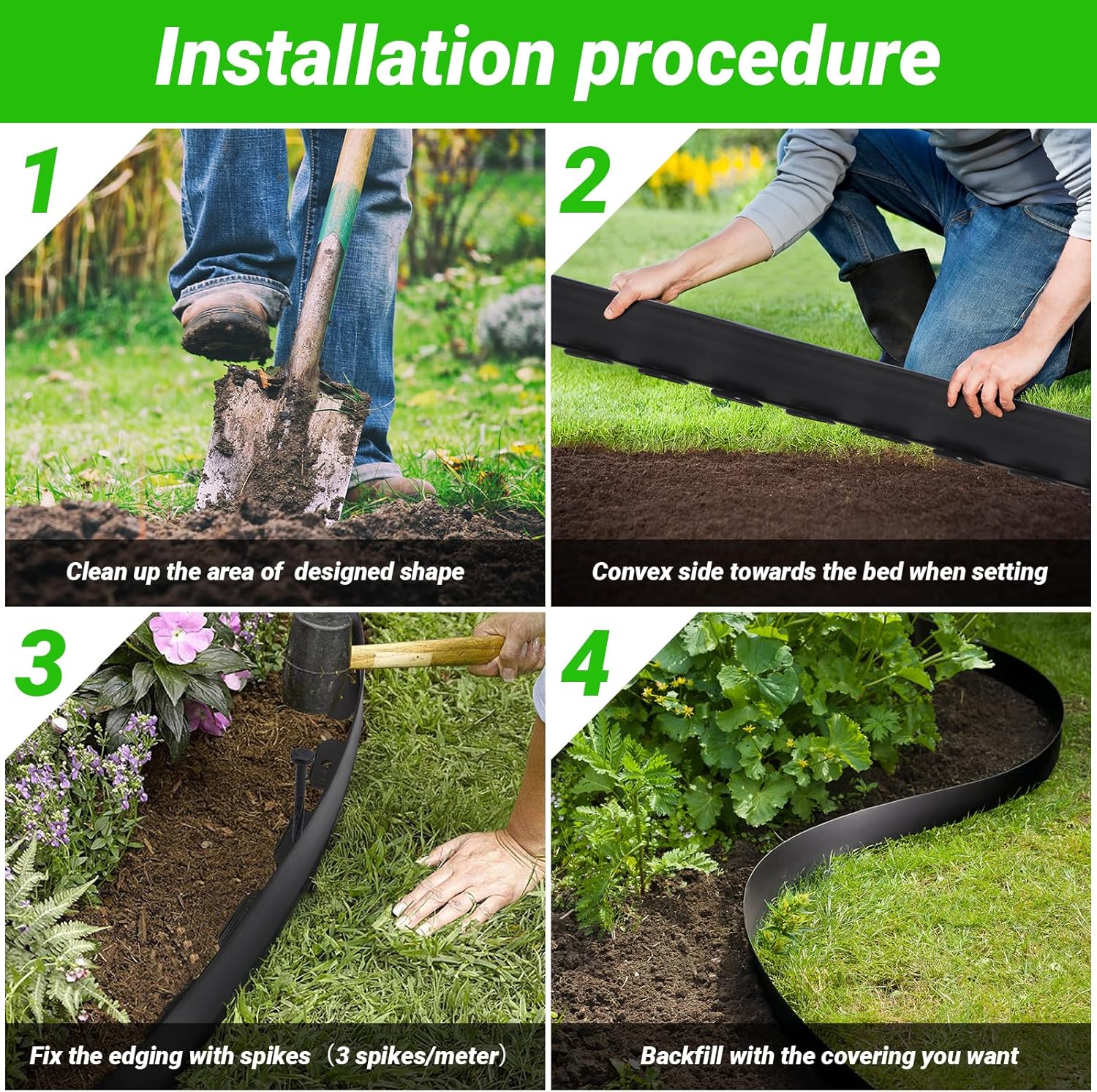 • 【Value Set】This set includes a 66-foot roll of 4-inch high black garden edging, along with 60 spiral plastic anchoring stakes and 70 durable metal G-nails—everything you need for a quick and easy installation to create a stunning landscape.