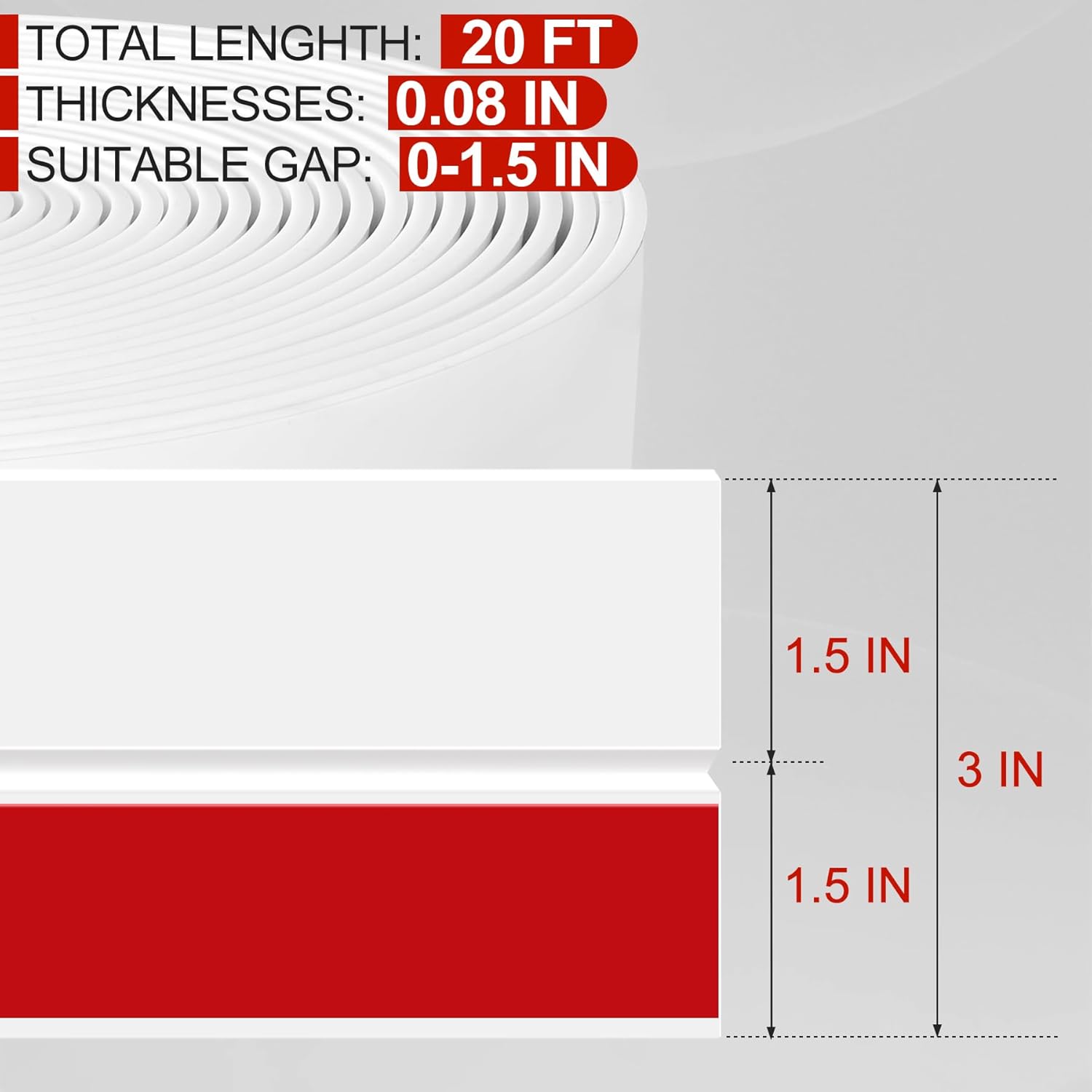 MYFAMIREA Door Weather Stripping 3IN (W) x 20FT (L) Door Draft Stopper Seal Tape Silicone Seal Strip Self Adhesive Shower Sweep Insulation Tape Side Bottom Strip for Sliding Glass Window Gap, White