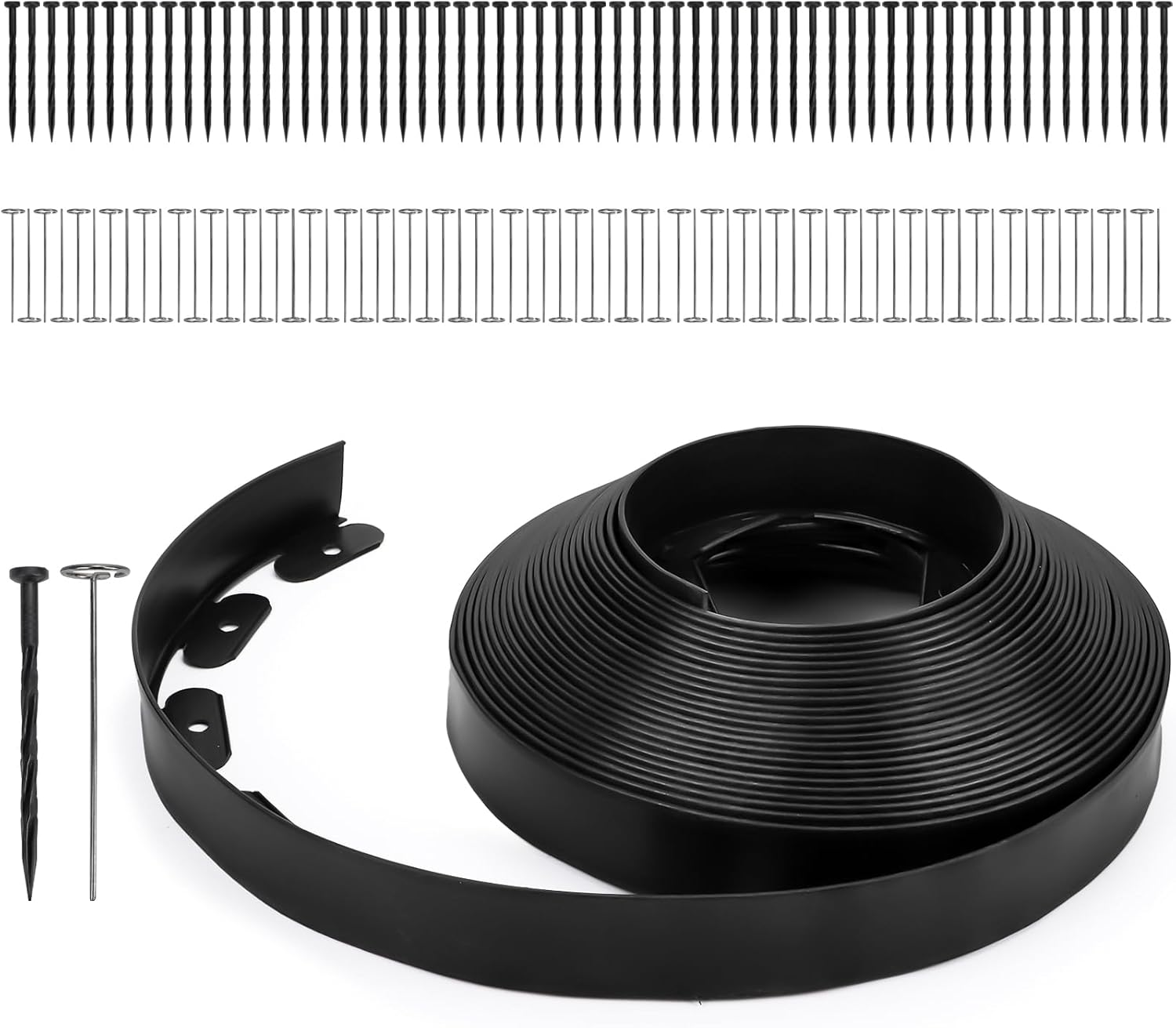 • 【Value Set】This set includes a 66-foot roll of 2-inch high black garden edging, along with 60 spiral plastic anchoring stakes and 70 durable metal G-nails—everything you need for a quick and easy installation to create a stunning landscape.