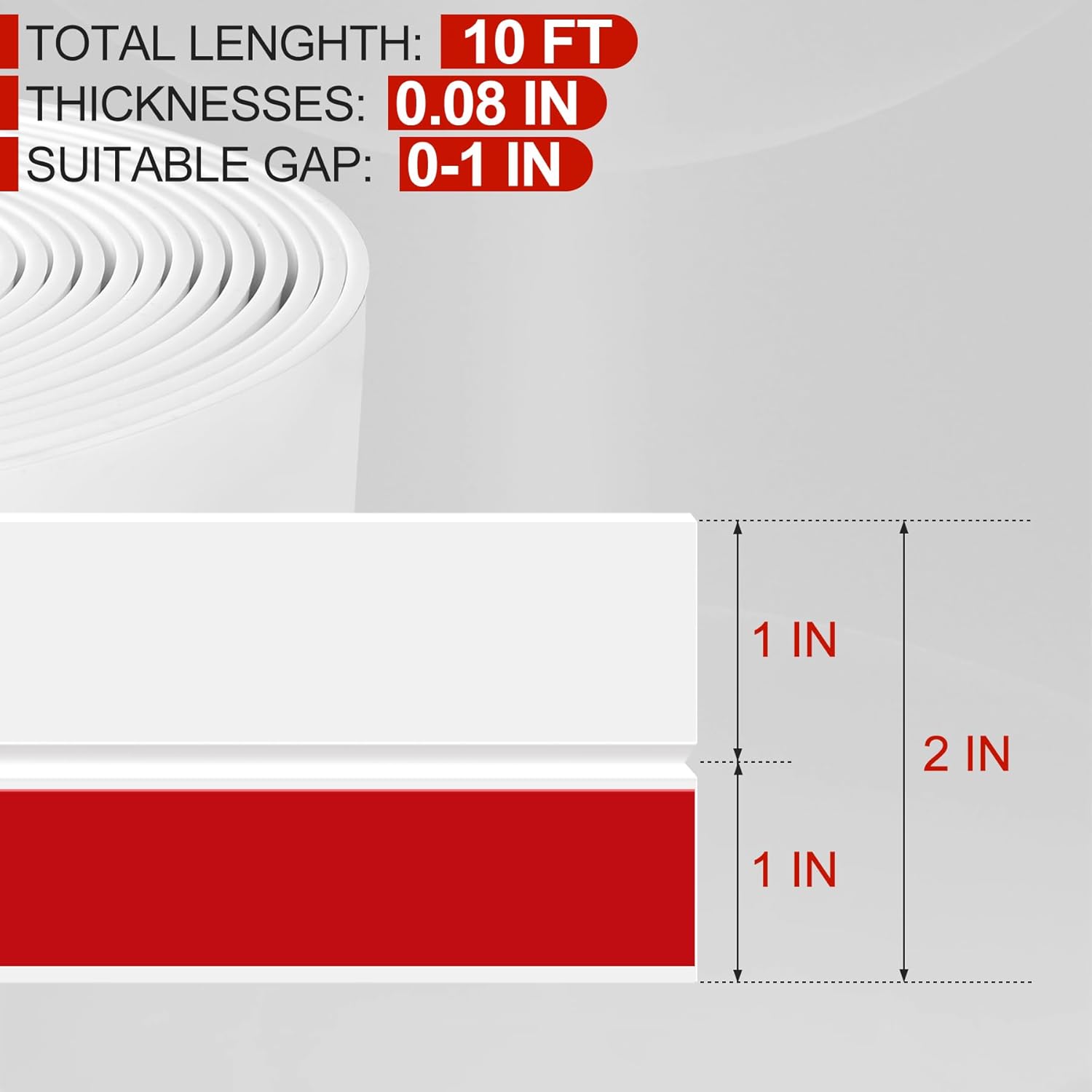 MYFAMIREA Door Weather Stripping 2IN (W) x 10FT (L) Door Draft Stopper Seal Tape Silicone Seal Strip Self Adhesive Shower Sweep Insulation Tape Side Bottom Strip for Sliding Glass Window Gap, White