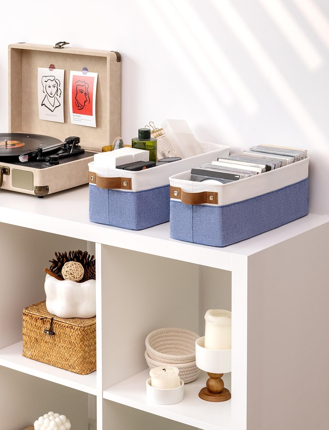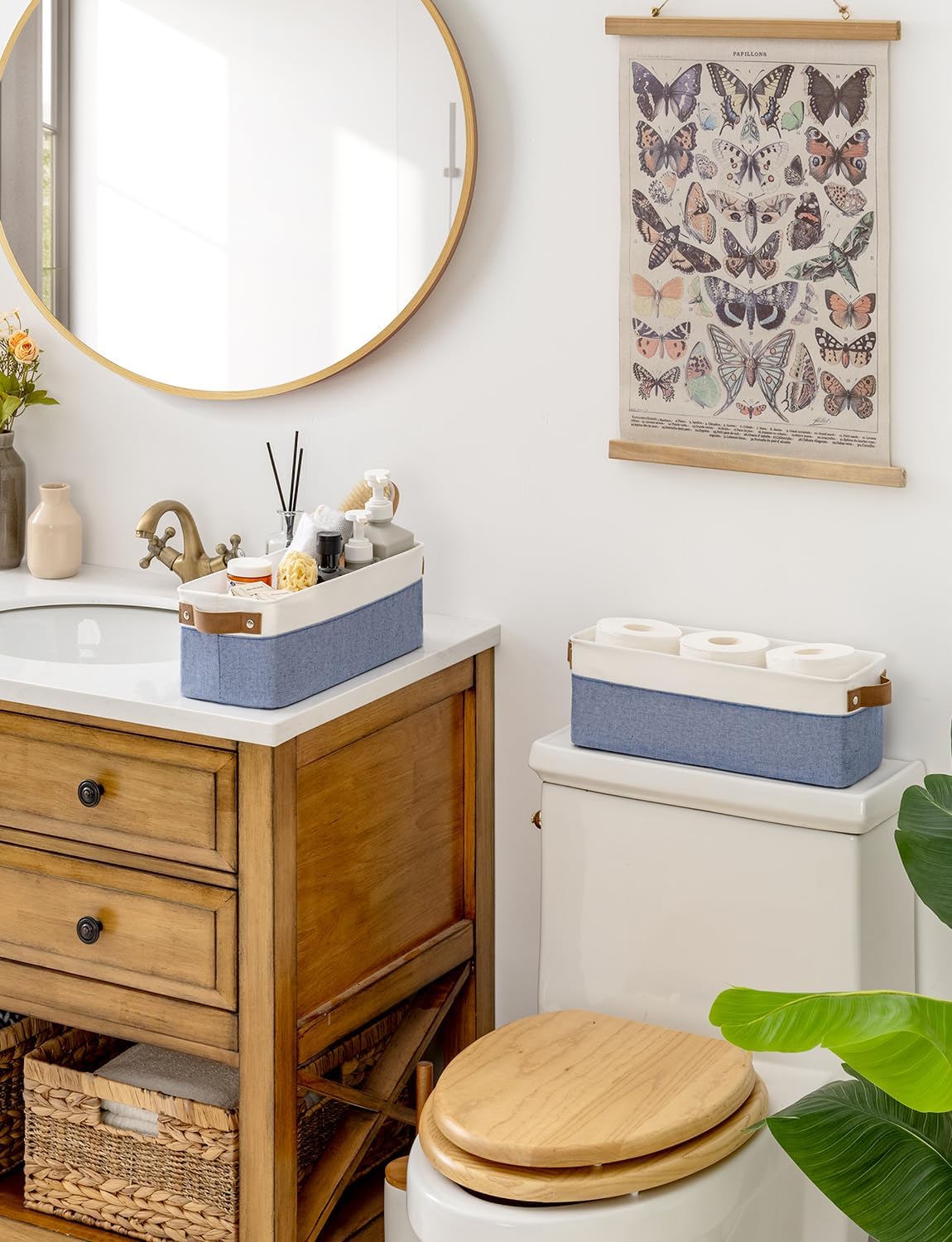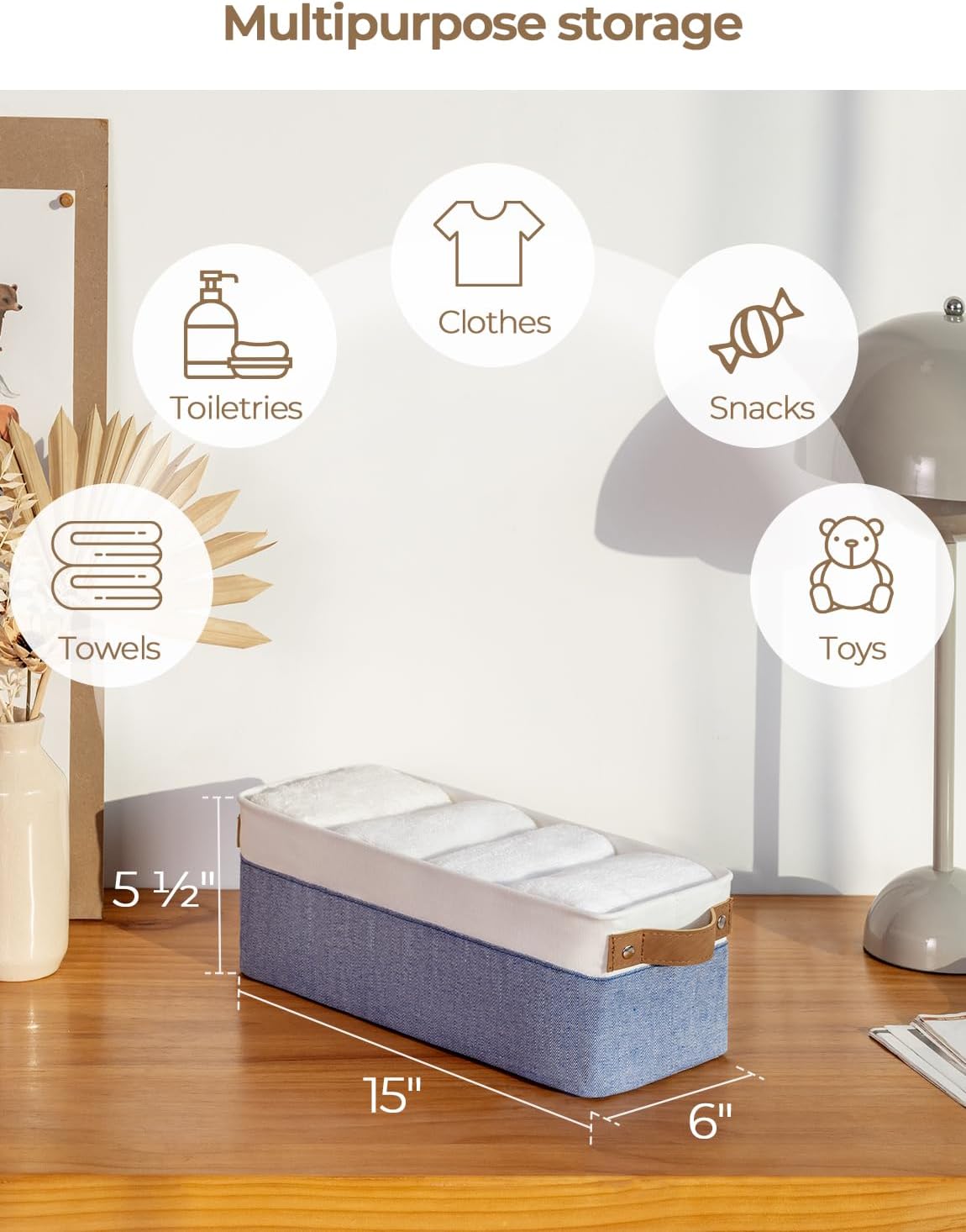 • Premium Materials: The storage basket is crafted from durable, thick fabric and features wide PU leather handles with rivet reinforcement, ensuring both strength and ease of movement to any desired location.