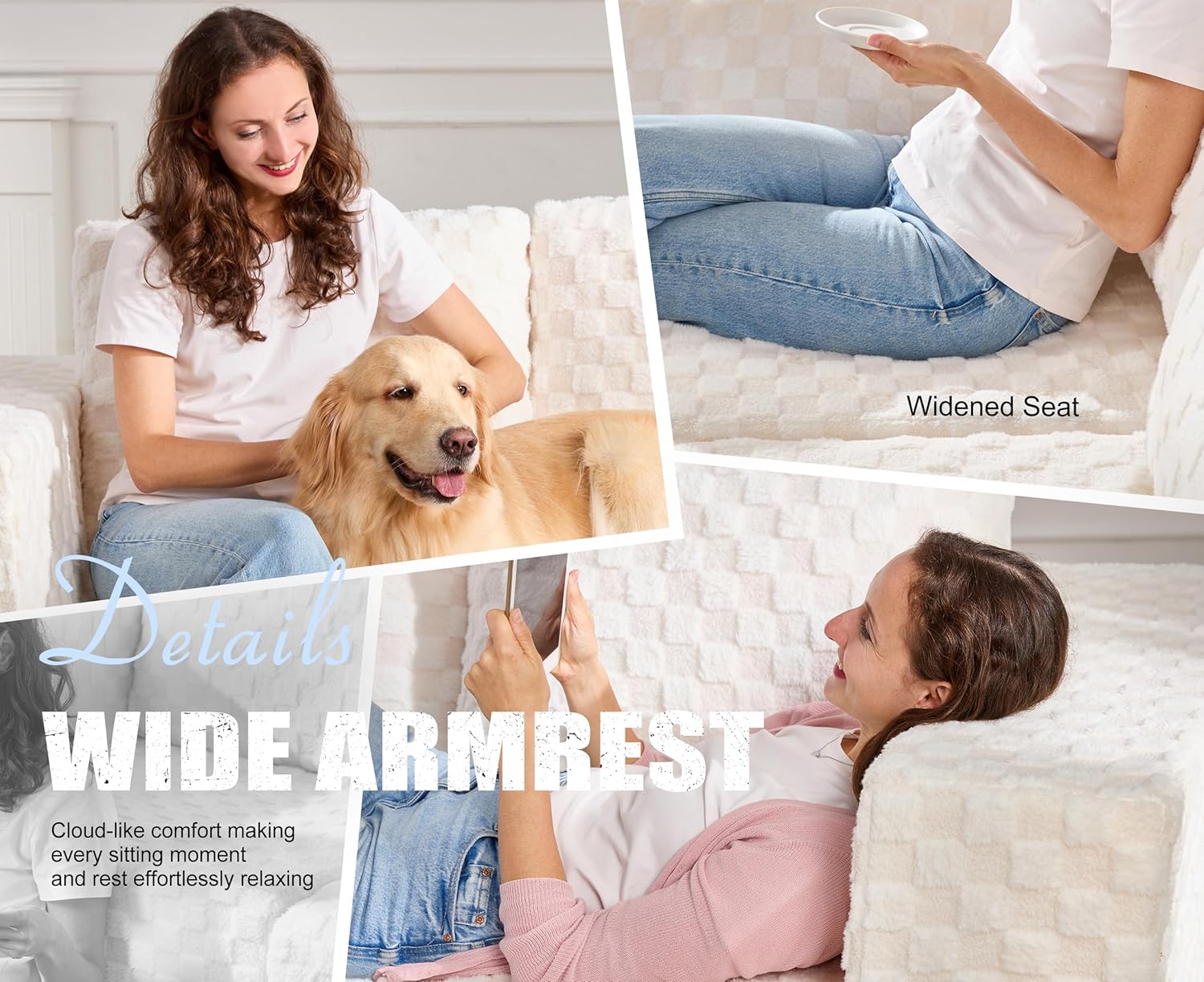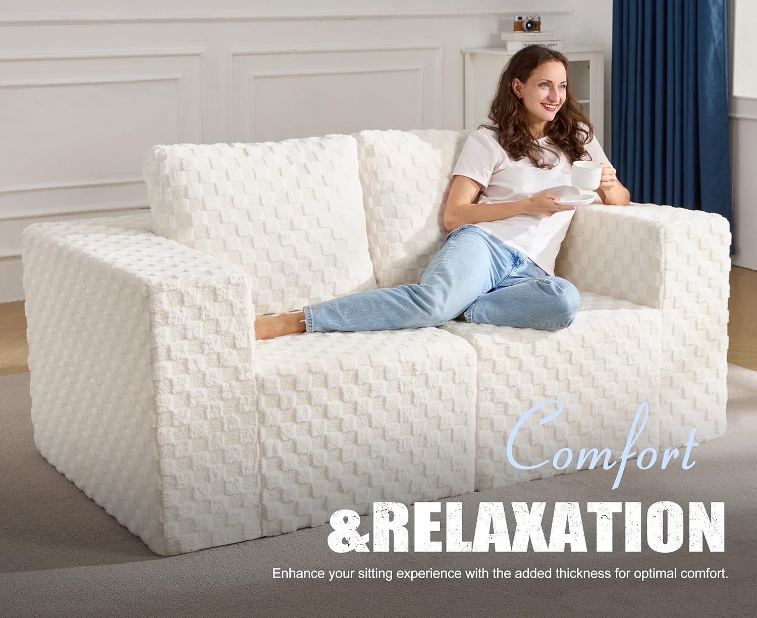 Modular Sectional Sofa 2 Seater Loveseat Modular Couch with Deep Seat Memory Foam Cloud Chair with Pillows Oversized Sectional Sofa for Living Room Bedroom (Plush White, Loveseat)
