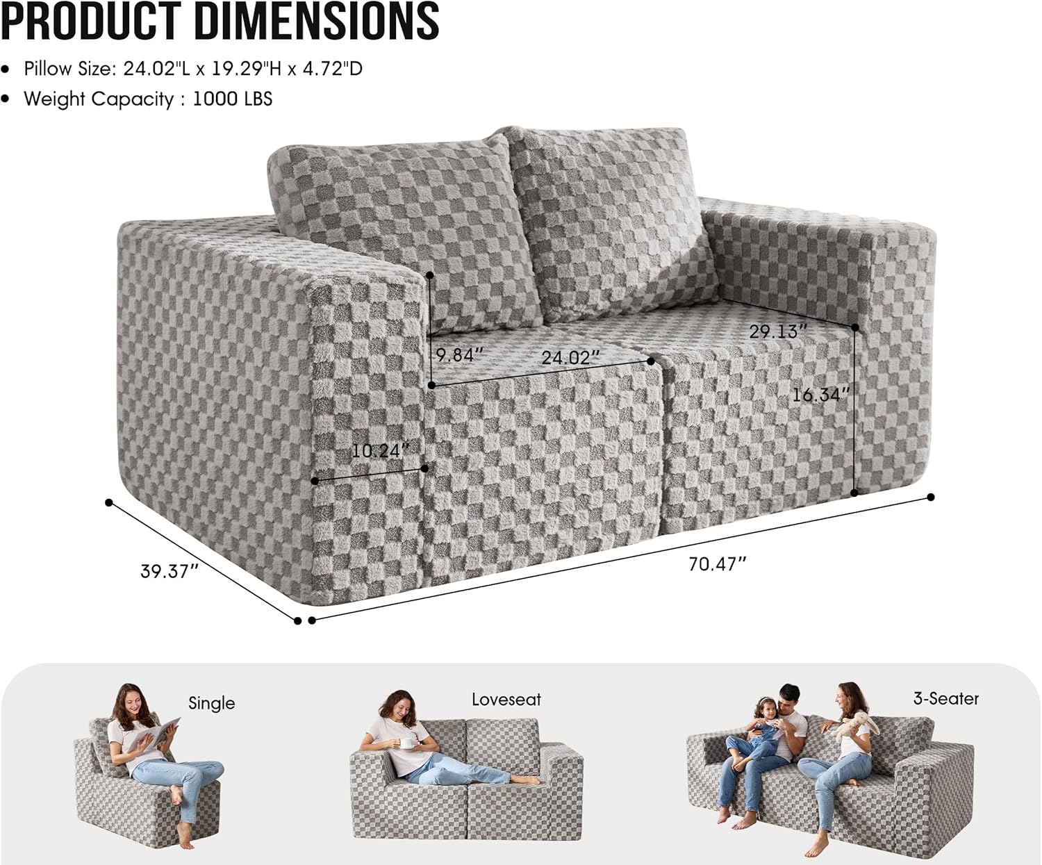• Flexible Modular Design: The core feature of this modular sectional sofa is its modular and free combination concept. The cleverly designed sofa modules allow you to easily piece and rearrange them to create possible layouts based on their spatial needs and aesthetic preferences. Whether you want a single sofa or loveseat sofa, you can adjust it however you like.