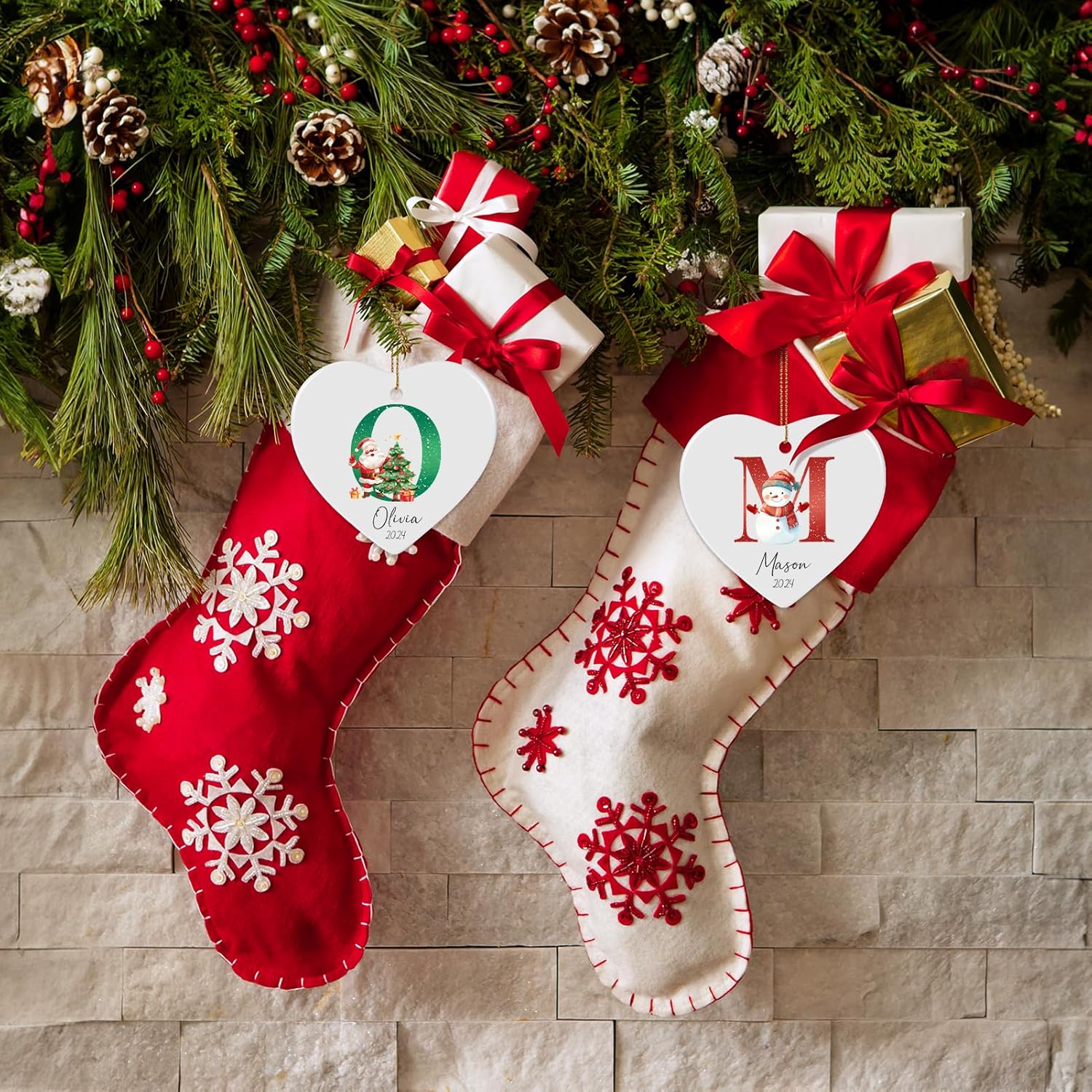 • CUSTOMIZABLE CHRISTMAS TREE DECOR: Enhance your holiday decor with our Christmas initial ornaments. The name ornaments design can be part of a set of Christmas ornaments with initials, you can use this Custom Initial Ornaments as a decor item in your Christmas Tree, Stocking, Gift Card. These initial Christmas tree ornaments are a wonderful way to celebrate each family member uniquely.