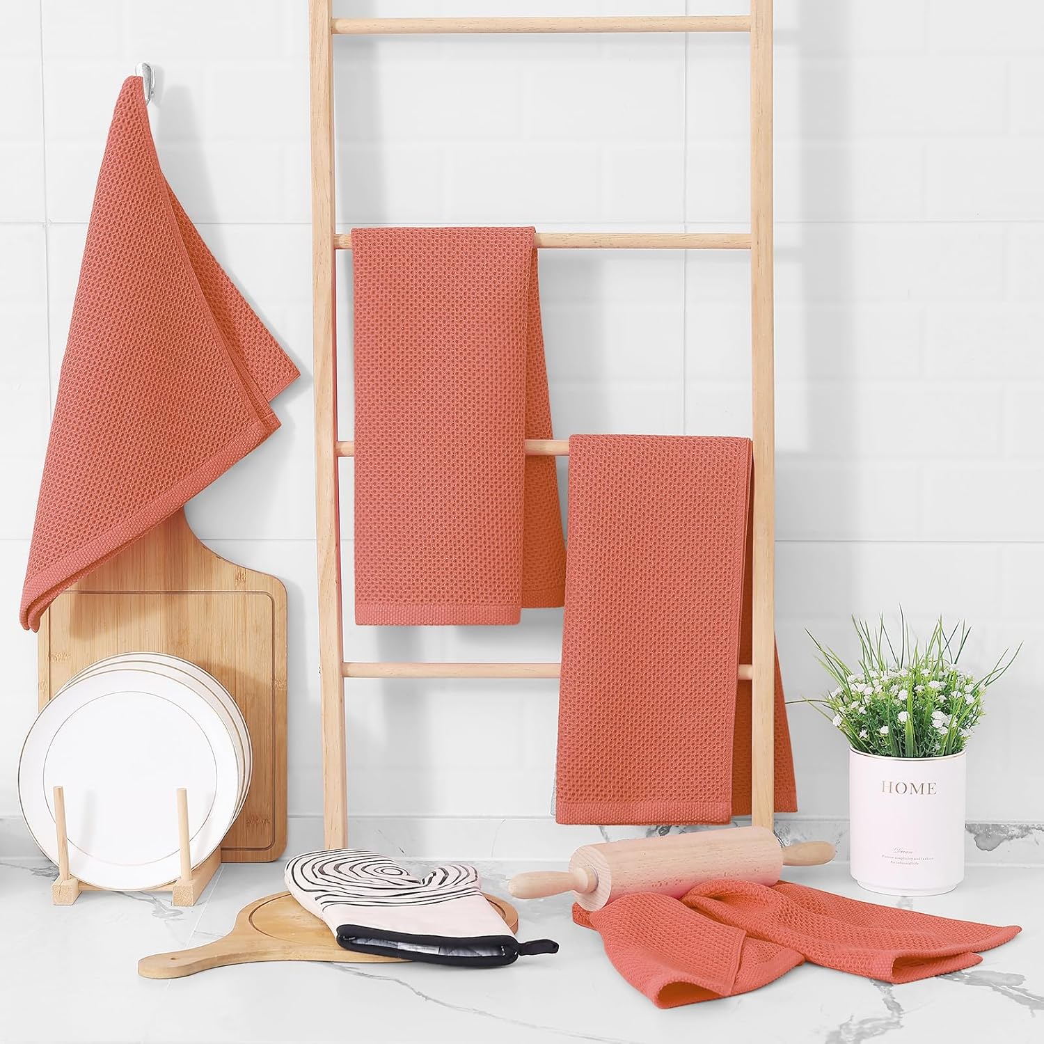 Homaxy 100% Cotton Waffle Weave Kitchen Dish Towels, Ultra Soft Absorbent Quick Drying Cleaning Towel, 13 x 28 Inches, 12-Pack, Coral