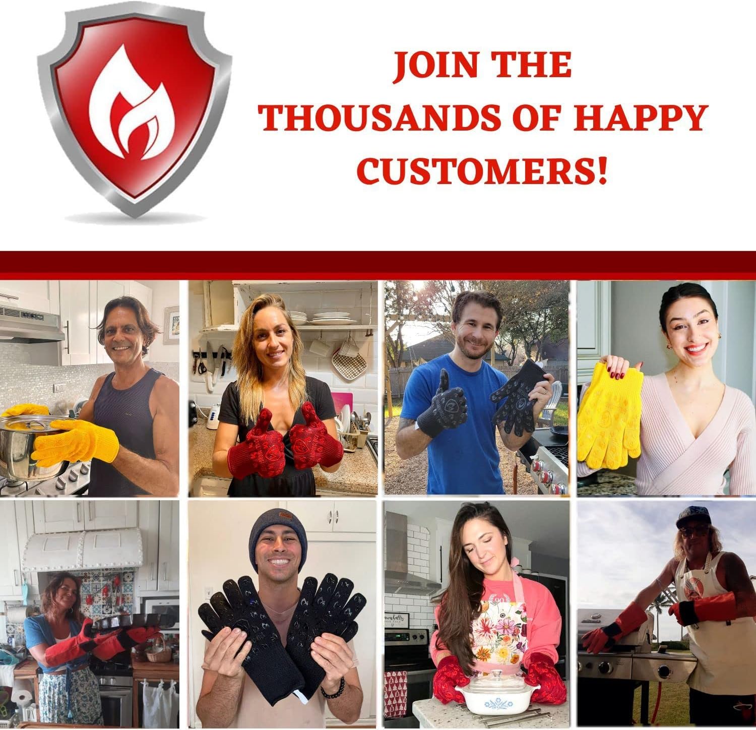 • Extreme Heat Resistant & Cut Resistant - EN407 certified, that can withstand heats up to 932°F. Our heat resistant gloves provide the highest protection for your hands, so you can cook with confidence with flexible fire gloves in extreme heat. The gloves also provide the highest EN388 level 5 cut resistance which is 4 times stronger than leather. Ideal for cutting vegetables, meats, fish and more.