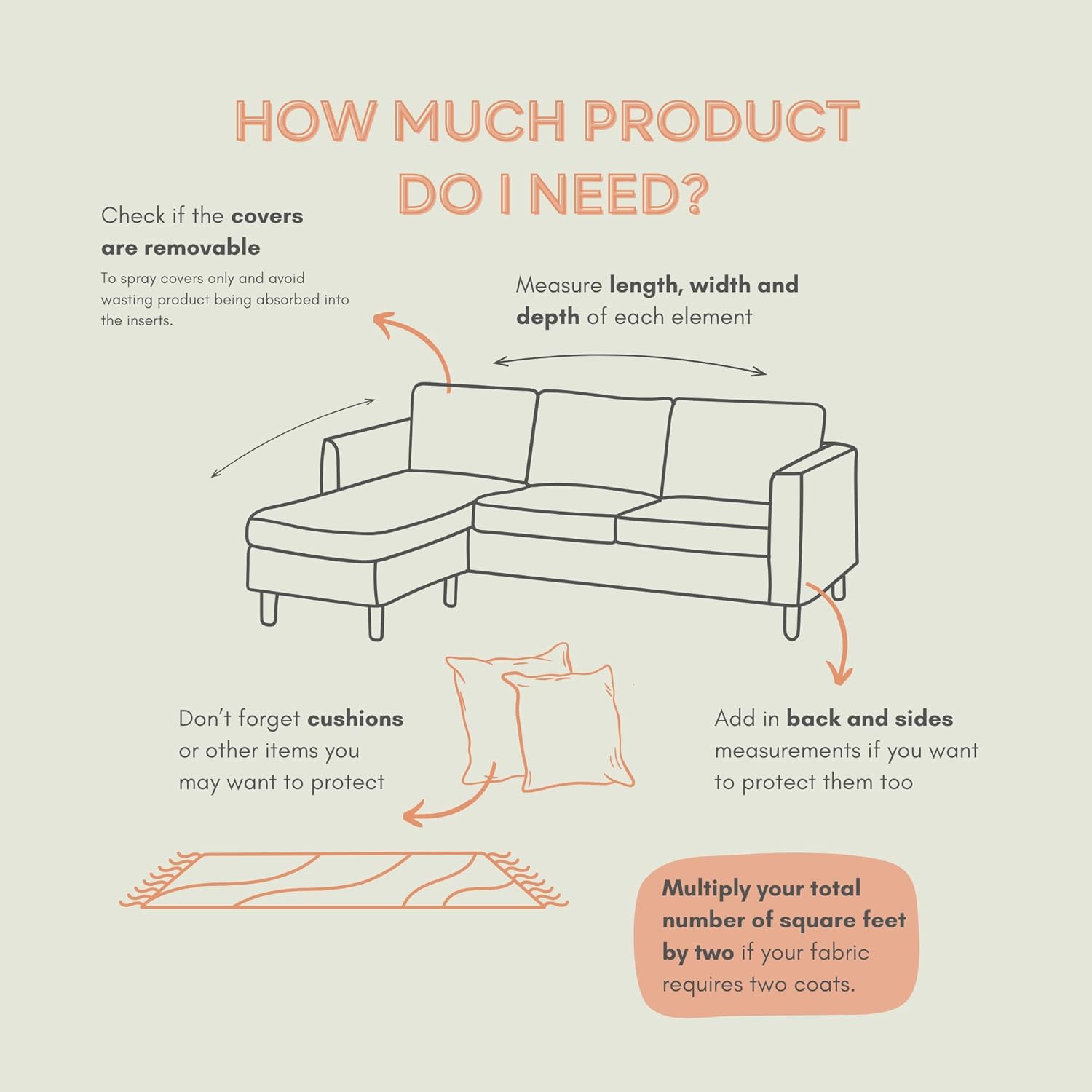 • EASY APPLICATION FOR LONG-LASTING RESULTS : Use a battery sprayer with protectME fabric protection for large areas and apply two coats on absorbent or textured fabrics. Buff in the first coat on napped or fluffy materials for even coverage. High-traffic areas may need reapplication, but protection remains effective.