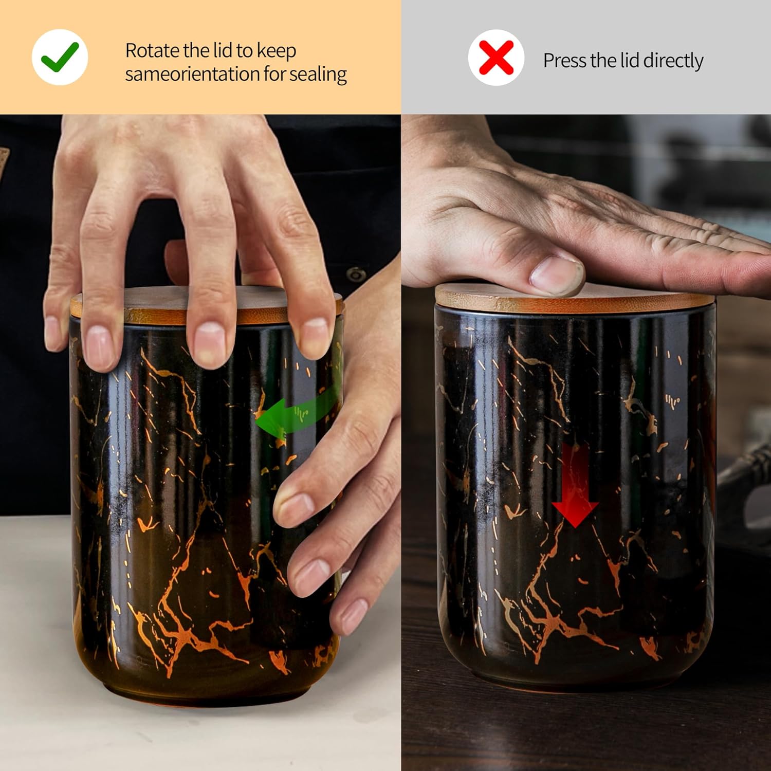• Elegant Ceramic Storage with Gold Marble Pattern | Upgrade your kitchen with Tenforie’s black ceramic canister set, featuring a sleek gold marble pattern and a glossy finish. This sophisticated design complements any modern or classic décor.