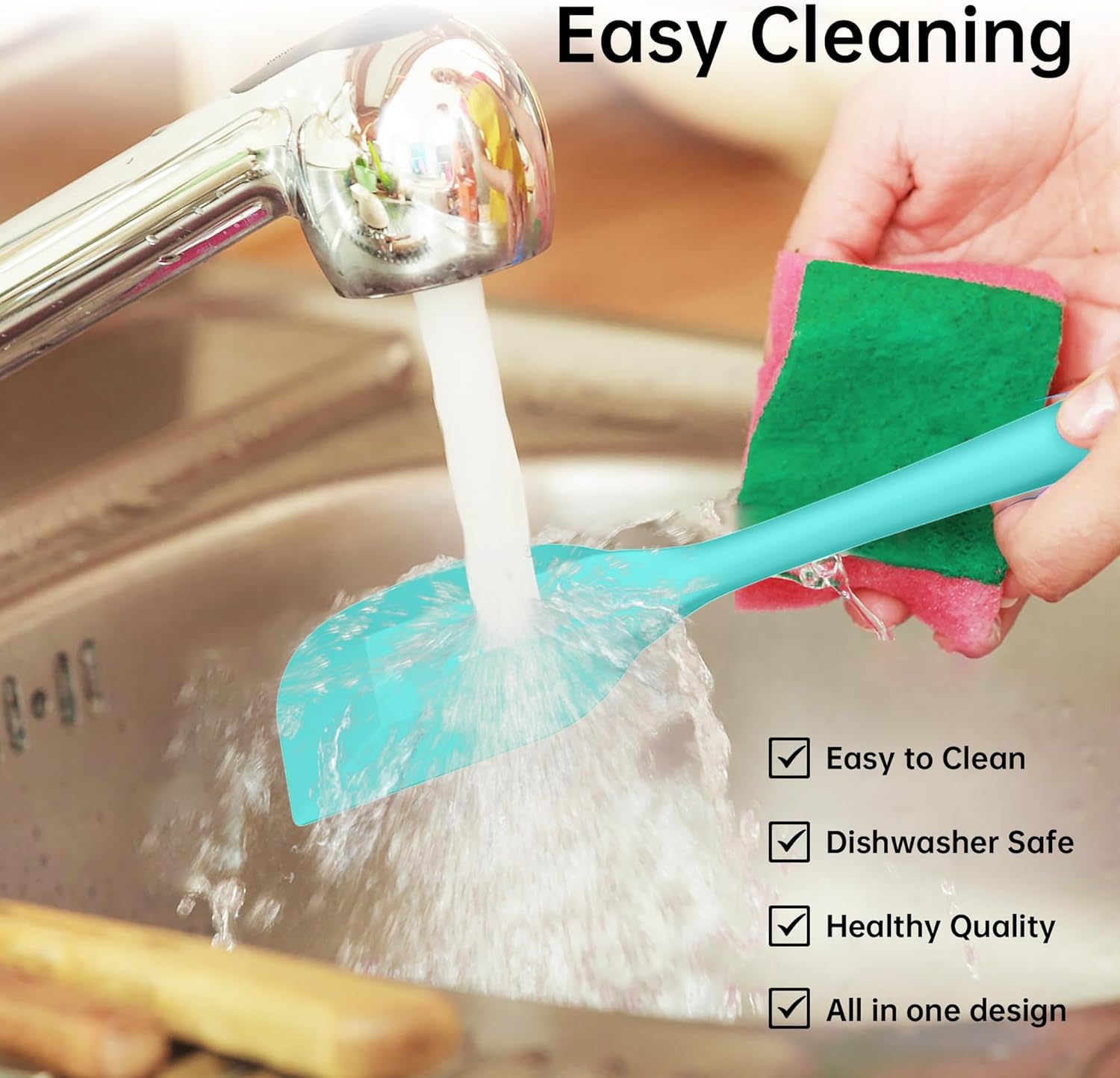 • 【Easy to Clean】: The spatulas for kitchen use in a seamless one-piece shape, comfortable to hold, can be placed in the dishwasher, with a hanging hole design, and can be hung after cleaning.